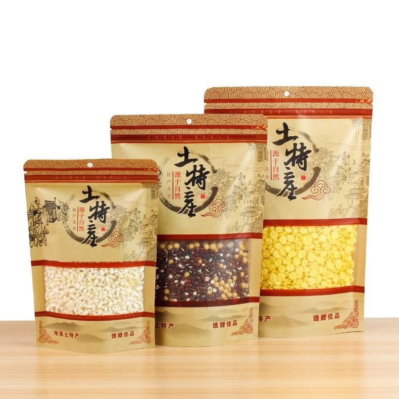 土特产包装袋牛皮纸自封袋干货杂粮香菇木耳红糖自封自立通用袋子