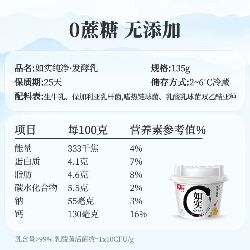 【下拉详情领优惠】 光明如实无添加0蔗糖酸奶135g*12杯低温控糖