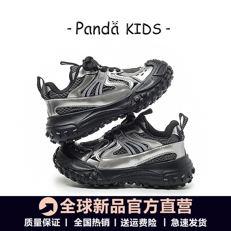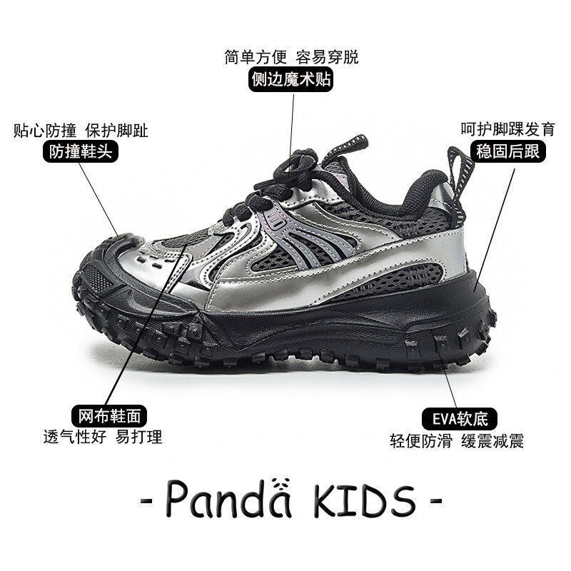 女童银黑色儿童休闲运动鞋夏季2025新款男童轮胎鞋透气防滑老爹鞋