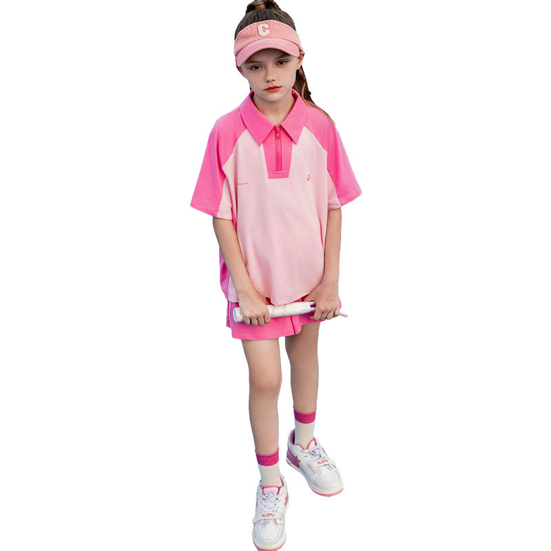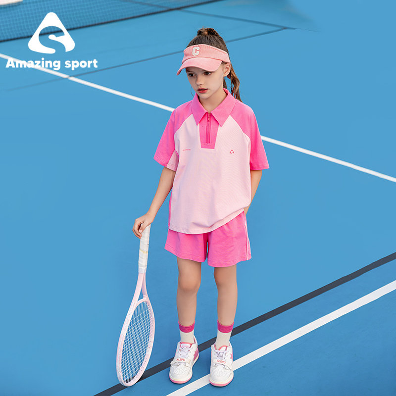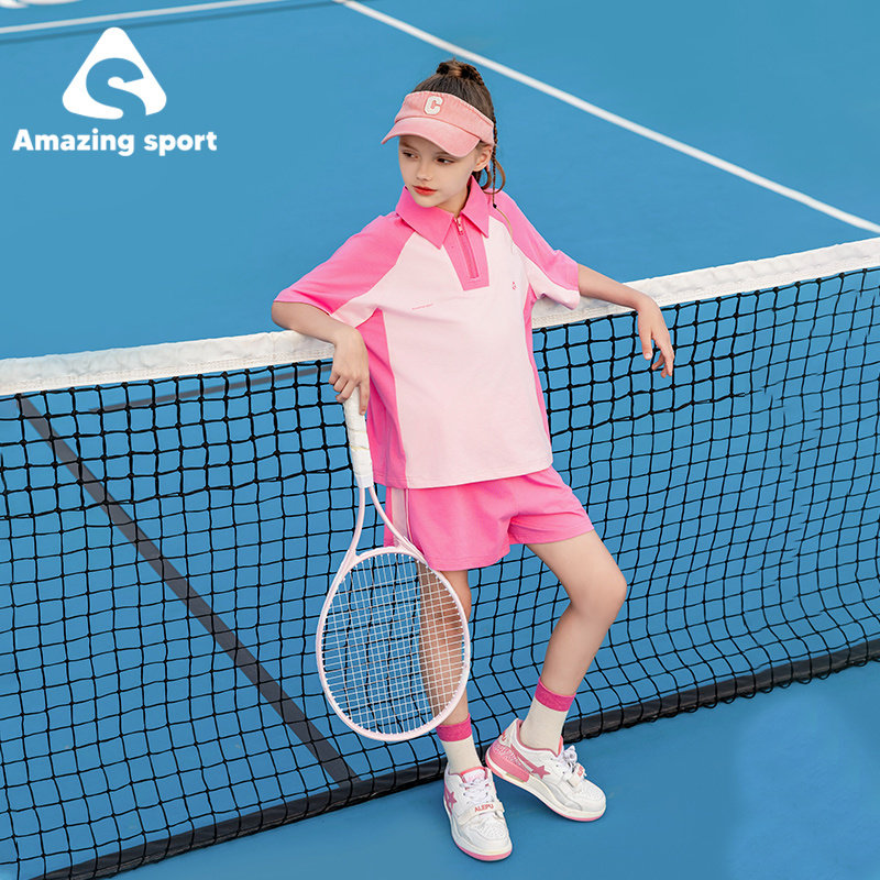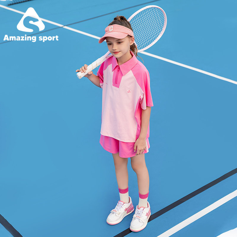 奇动【UPF50+】速干女童夏季POLO领透气运动套装儿童网球两件套潮
