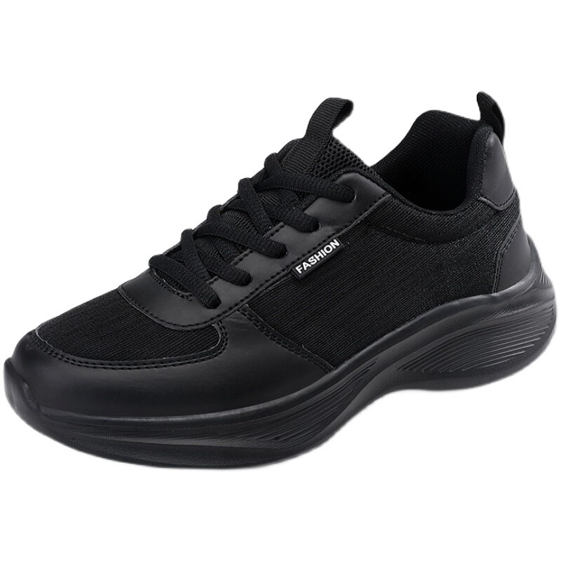 全黑色运动鞋女夏季薄款透气镂空网面鞋久站不累脚软底防滑工作鞋