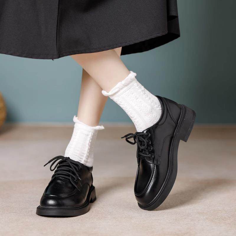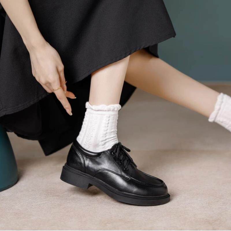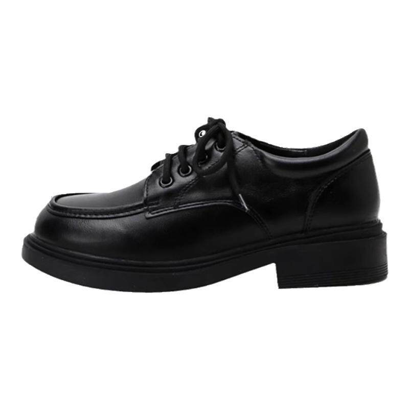 真皮黑色小皮鞋女2025春季新款乐福鞋系带厚底漆皮英伦风百搭单鞋