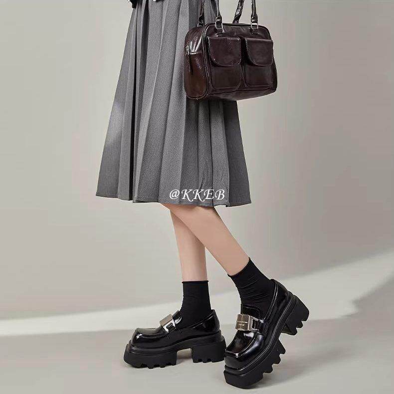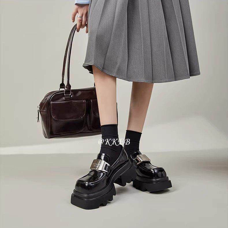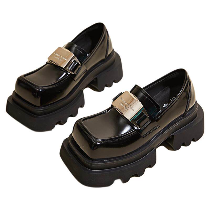 方头真皮一脚蹬乐福鞋女2025春季新款大头厚底英伦风JK小皮鞋单鞋