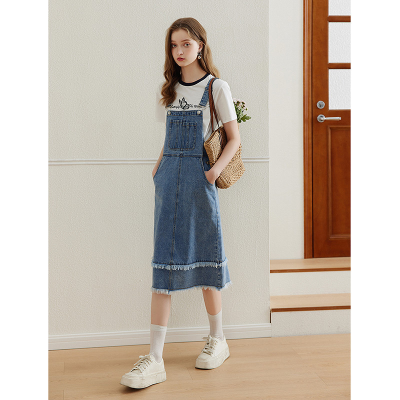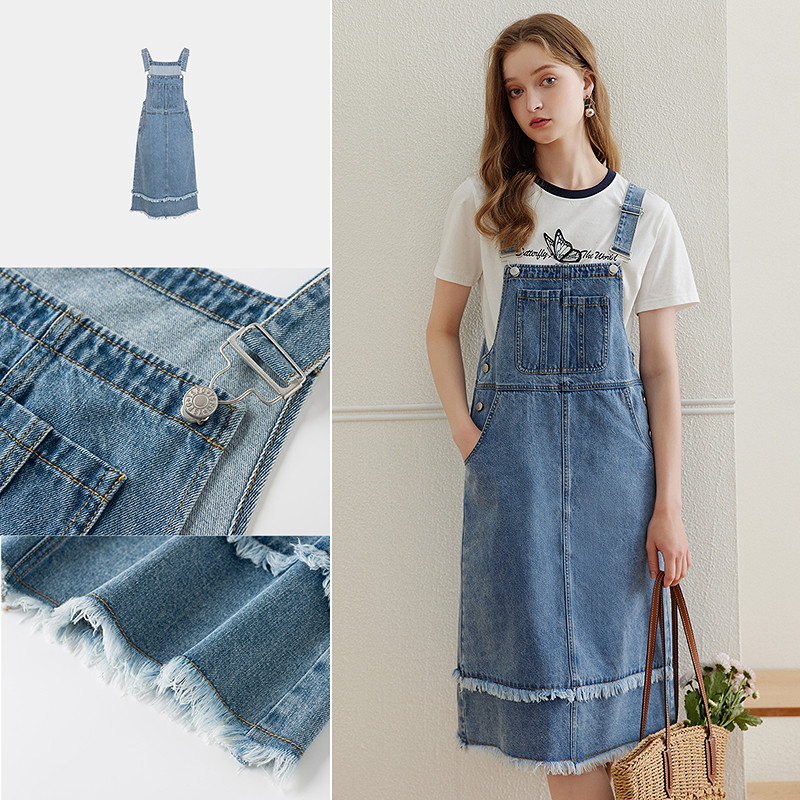KBNE蓝色牛仔背带裙连衣裙女夏季新款棉质复古小个子宽松显瘦裙子
