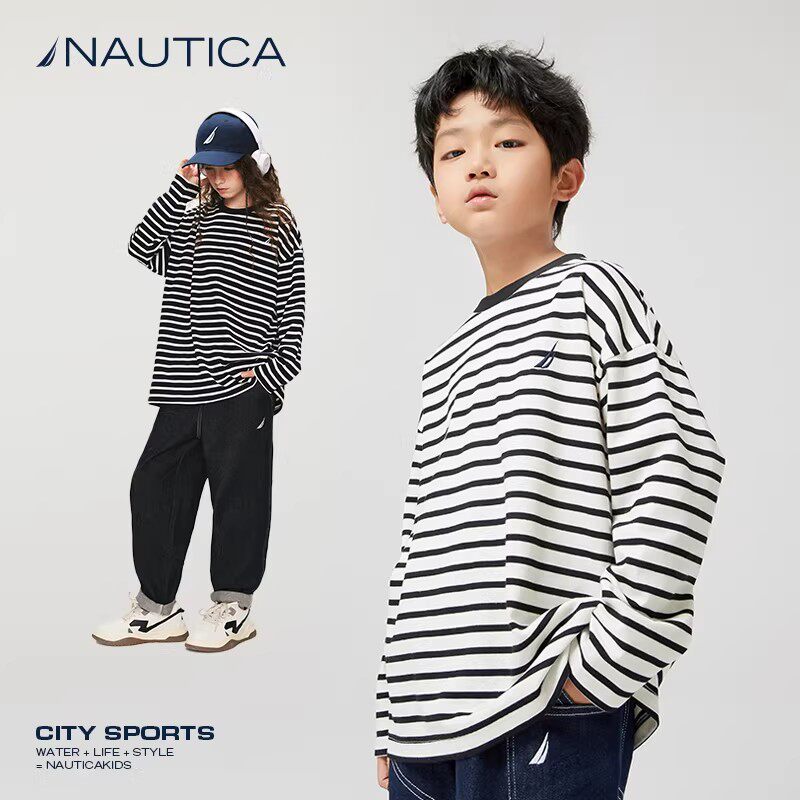 NAUTICA/诺帝卡童装男童女童长袖条纹T恤春秋季薄款卫衣美式复古