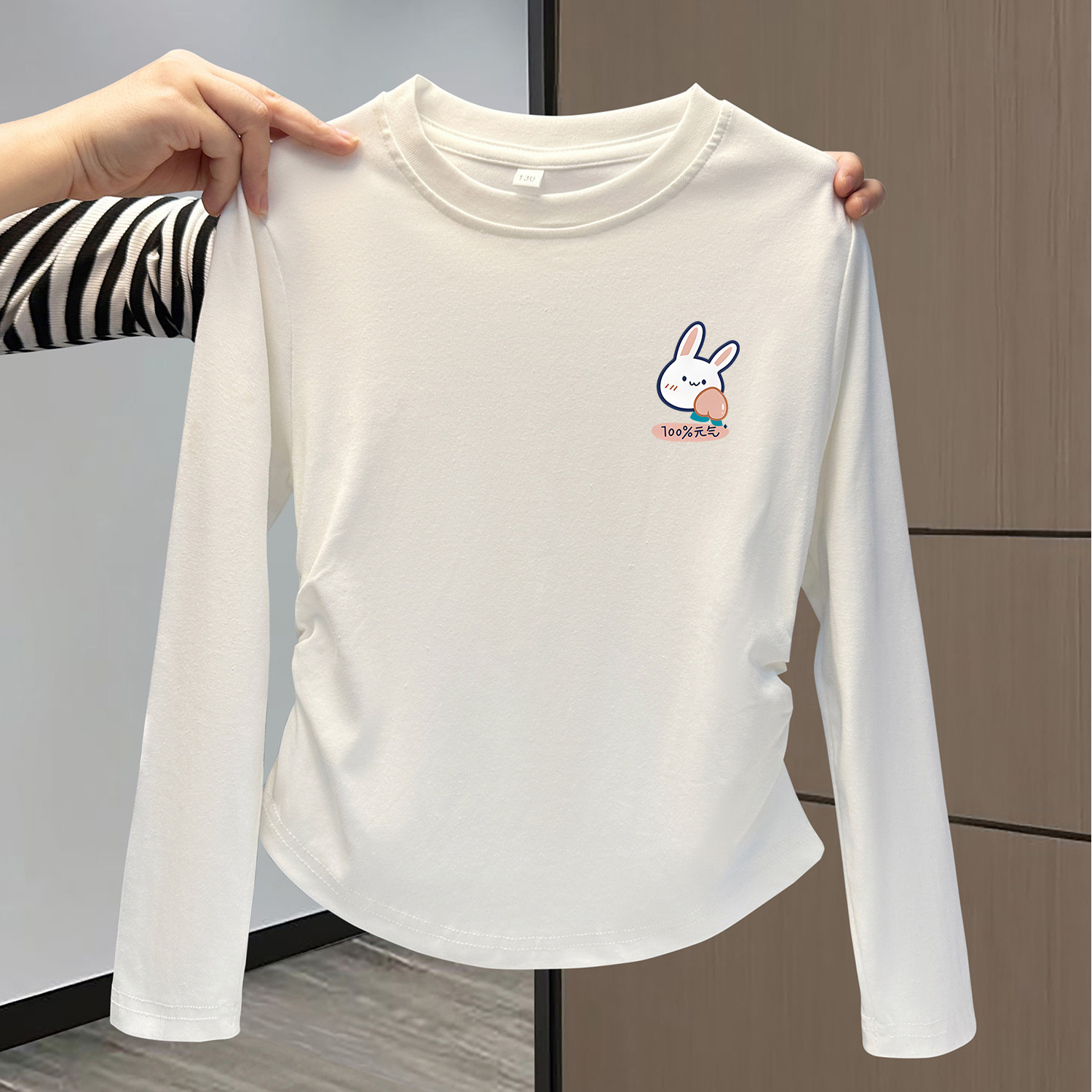 女童装纯棉短款长袖t恤春秋装打底衫内搭修身大儿童洋气收腰上衣