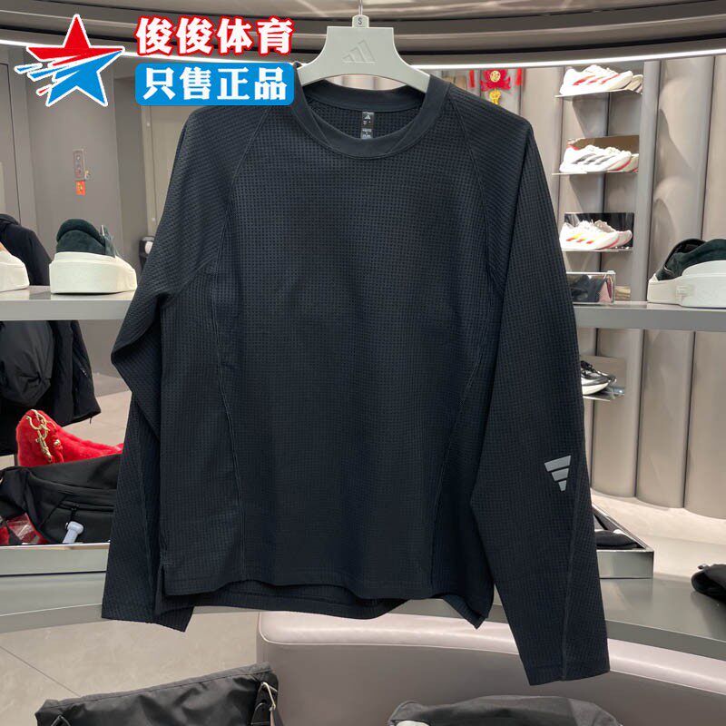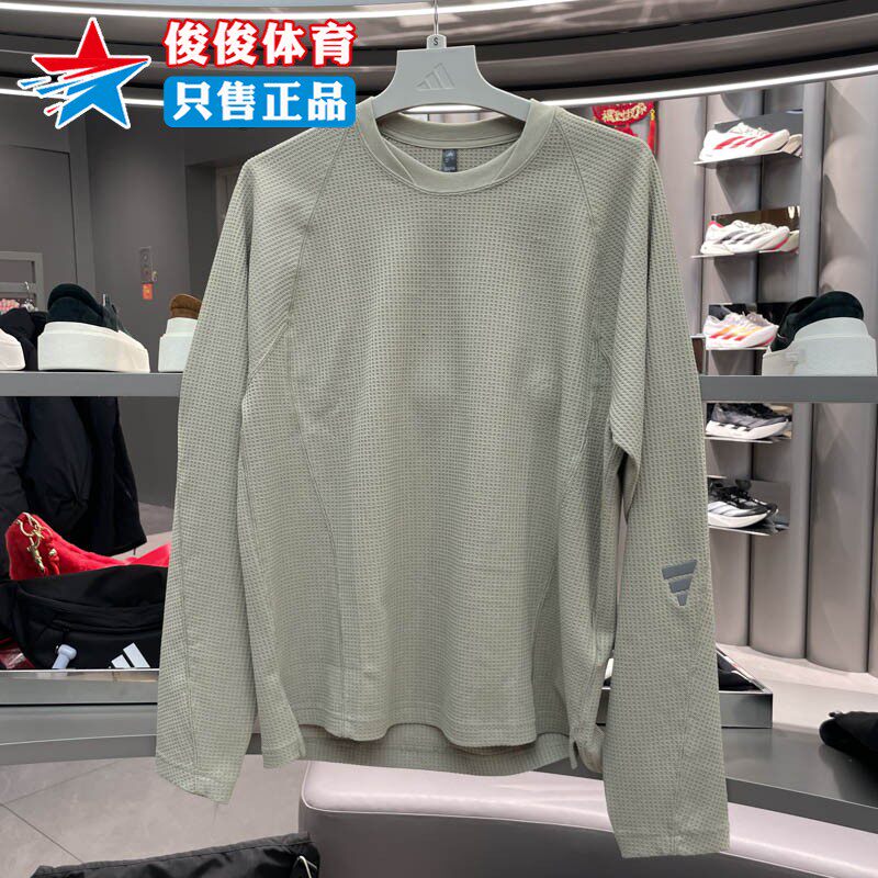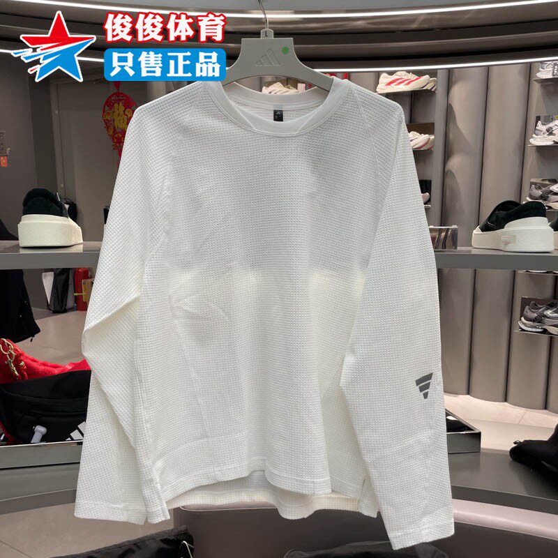 阿迪达斯2026春季新款男子华夫格针织运动休闲宽松长袖T恤KV0130