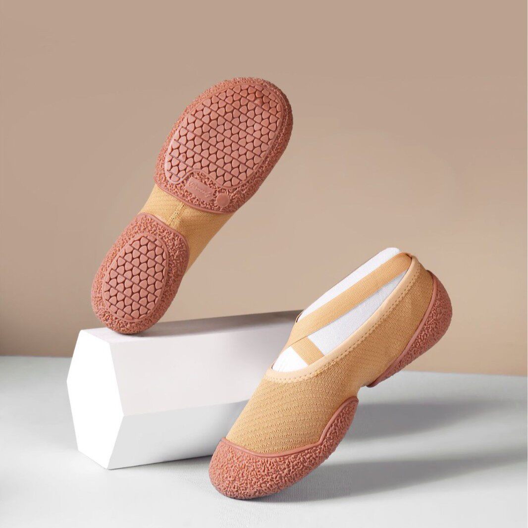室内运动鞋女款静音防滑芭蕾舞瑜伽飞织跳操弹力软底舞蹈减震透气