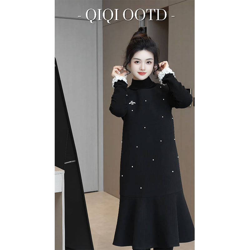 柒院家大码女轻奢高级感气质百褶背心连衣裙2025秋冬款宽松中长裙