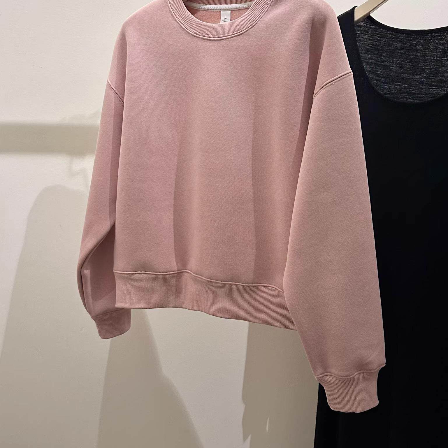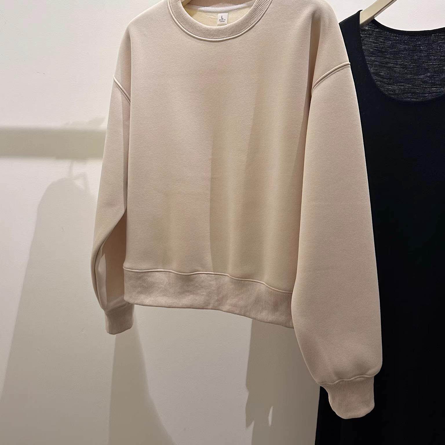 早春美式黑色时尚宽松圆领卫衣2026春新款女装圆领长袖小个子短款