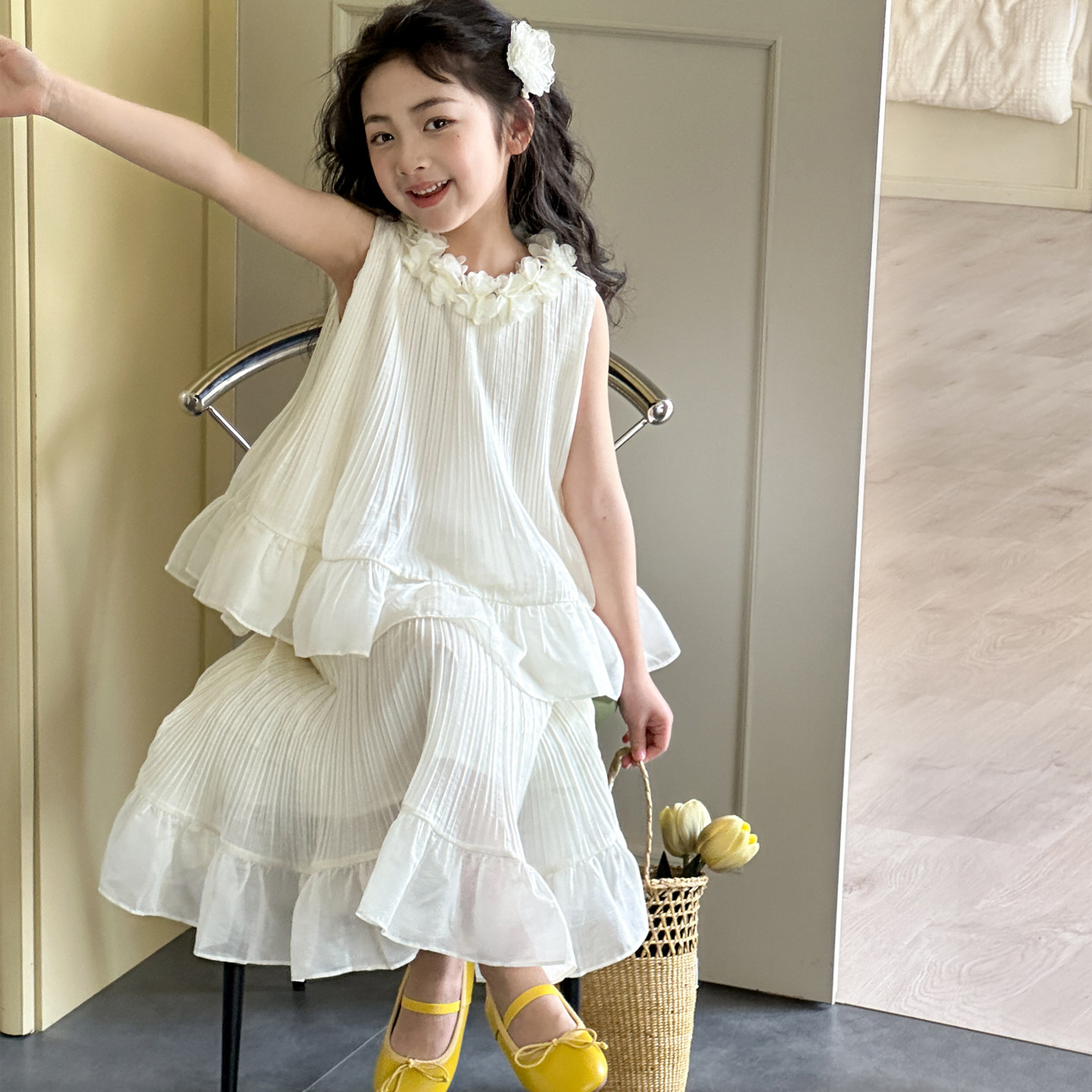女童夏套装裙初中生甜美可爱公主裙薄款2026新款夏季蛋糕裙两件套
