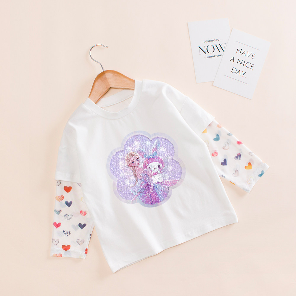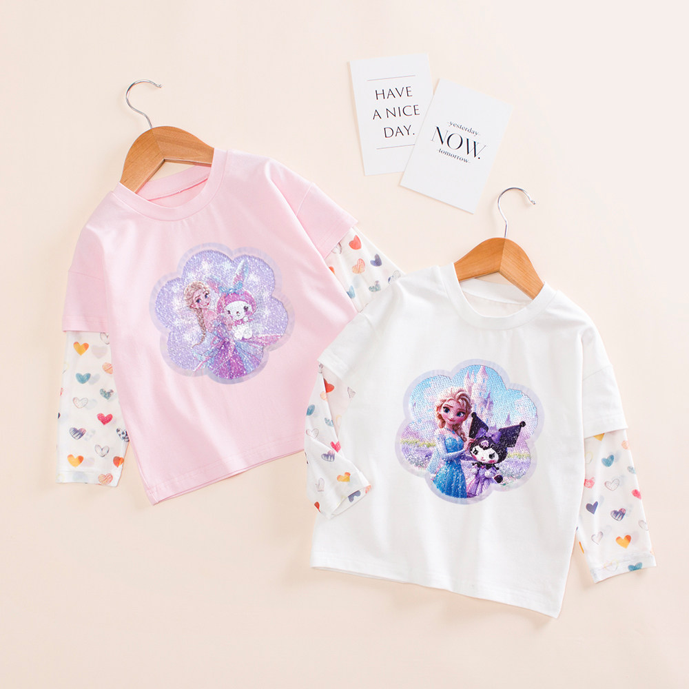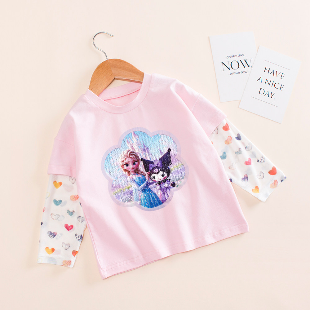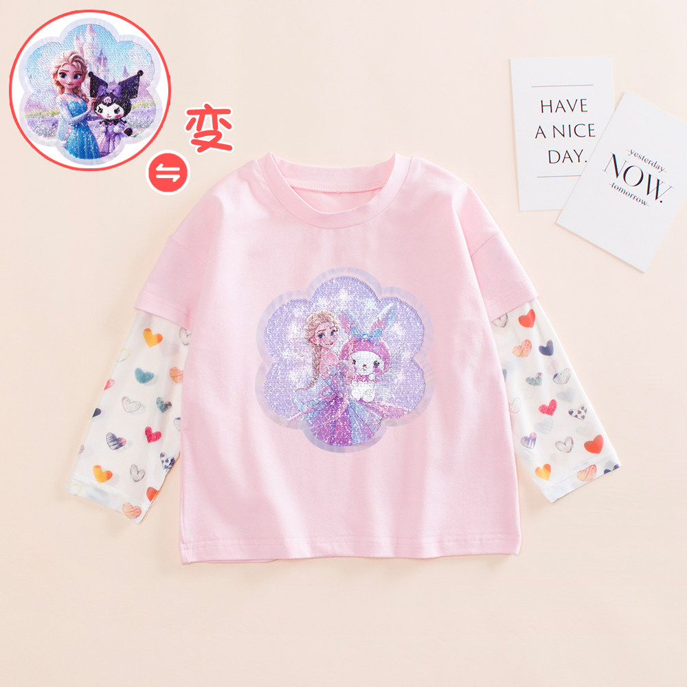 女童防晒长袖t恤夏季纯棉爱莎公主亮片变色衣服儿童韩系宽松上衣