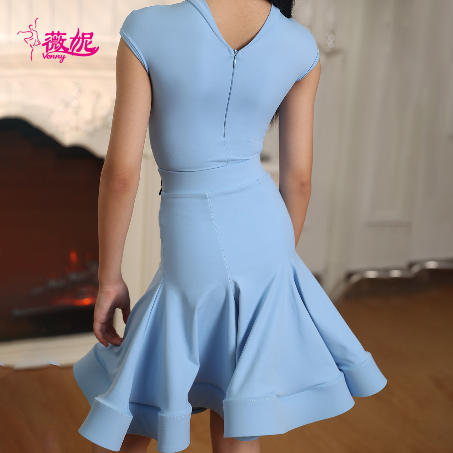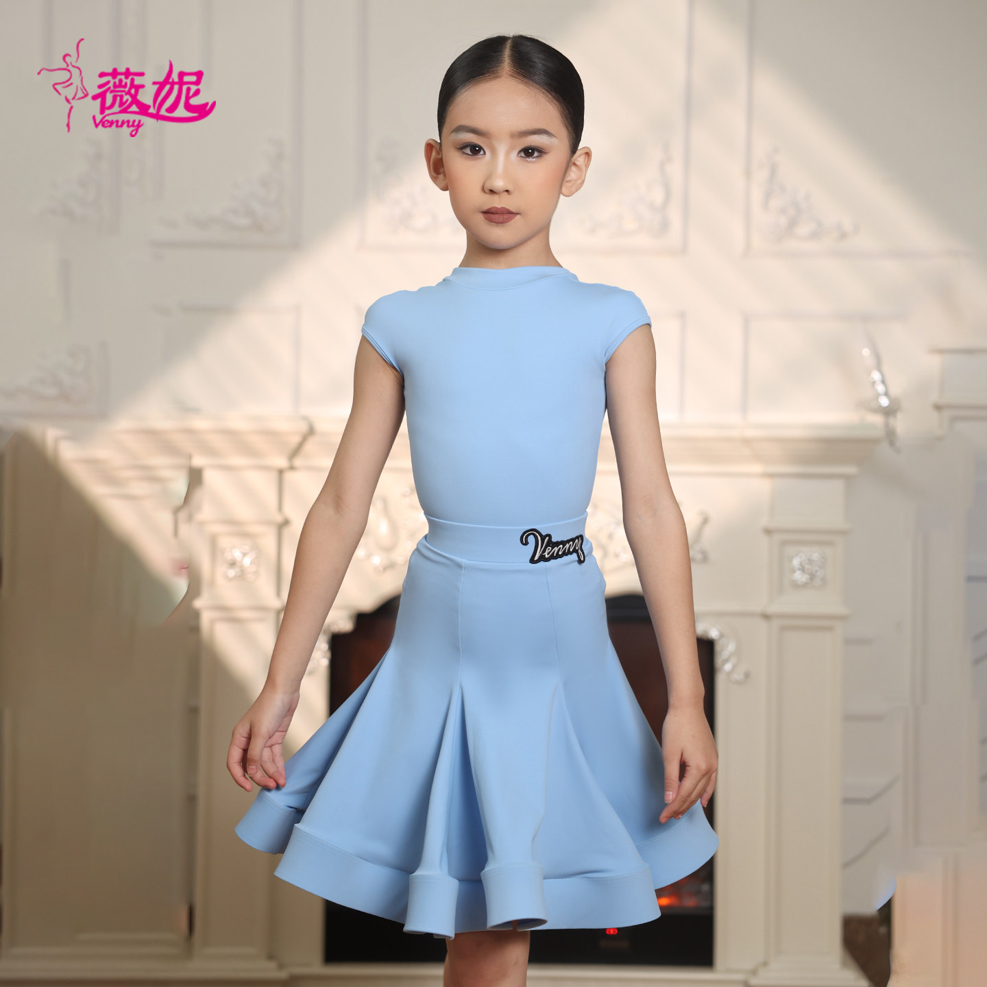 Venny薇妮拉丁舞服女儿童短袖规定服高端定制比赛服大裙摆鱼骨裙