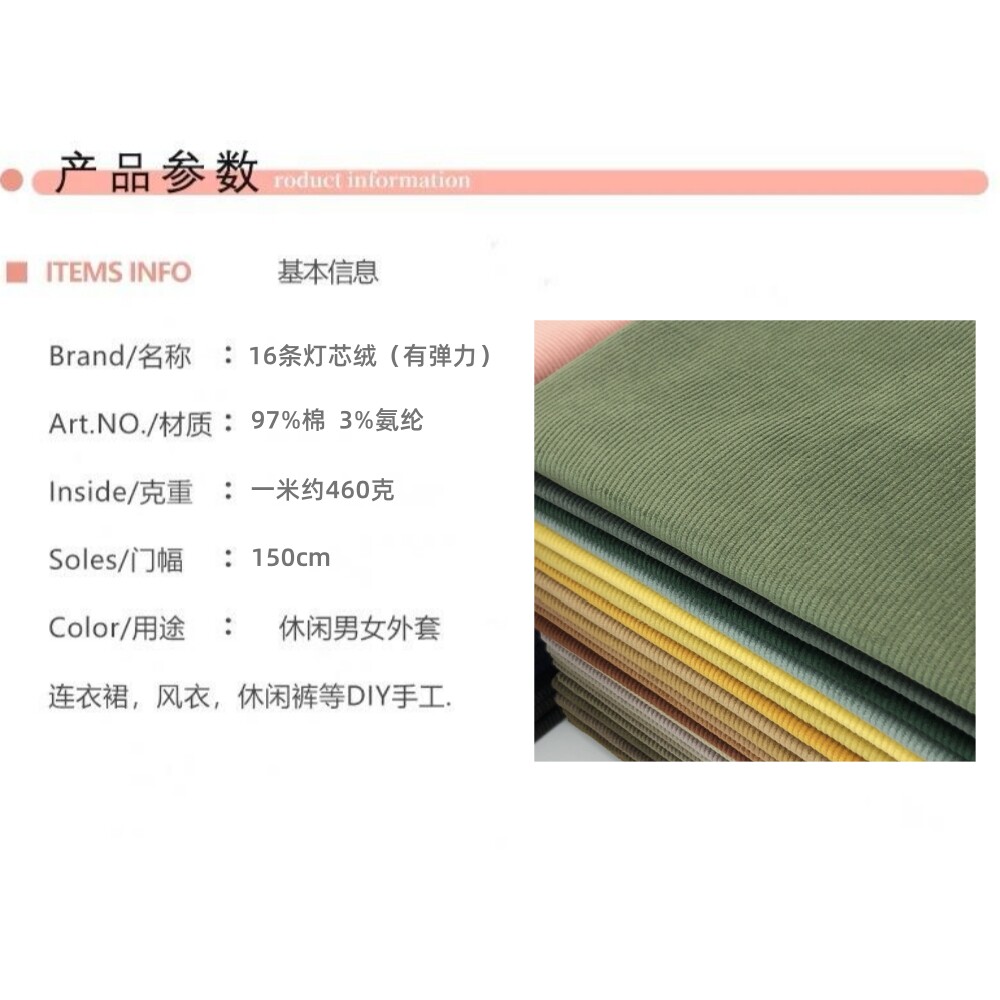 出口欧美纯棉弹力细条灯芯绒布料加厚男女裤子外套衣服装设计面料