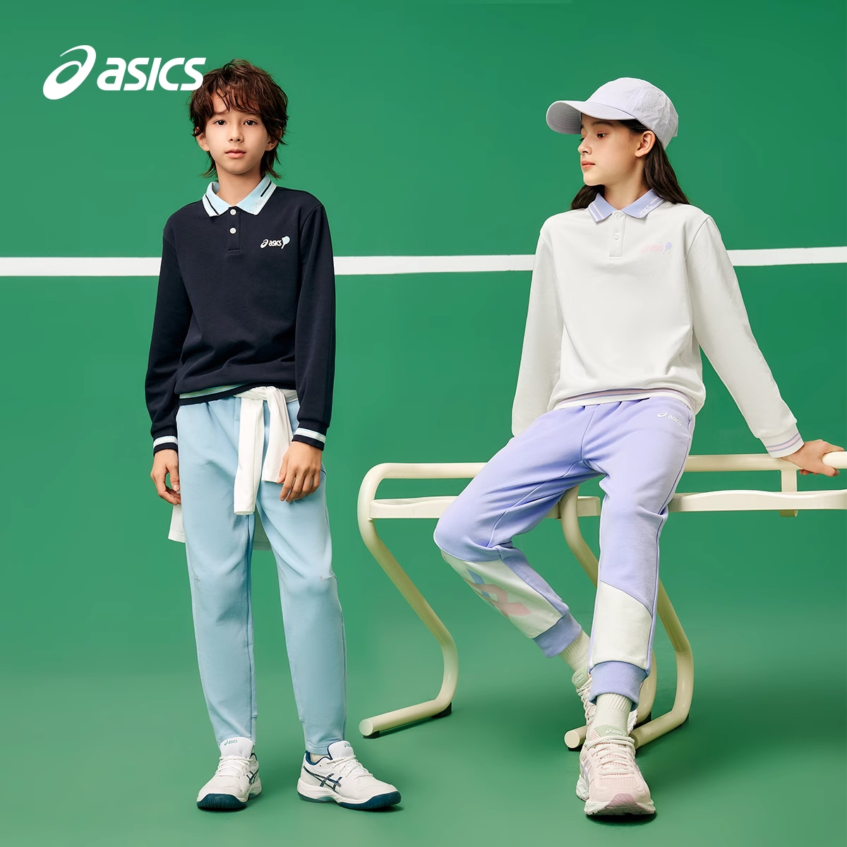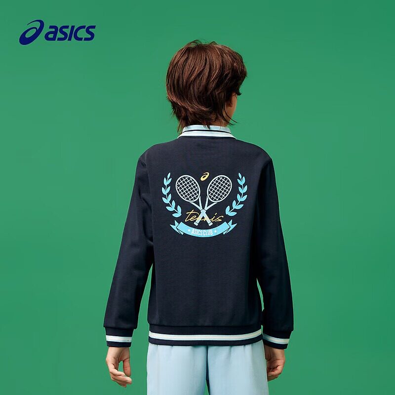 亚瑟士童装2025年秋冬儿童卫衣网球运动长袖T恤男女衬衫领运动服