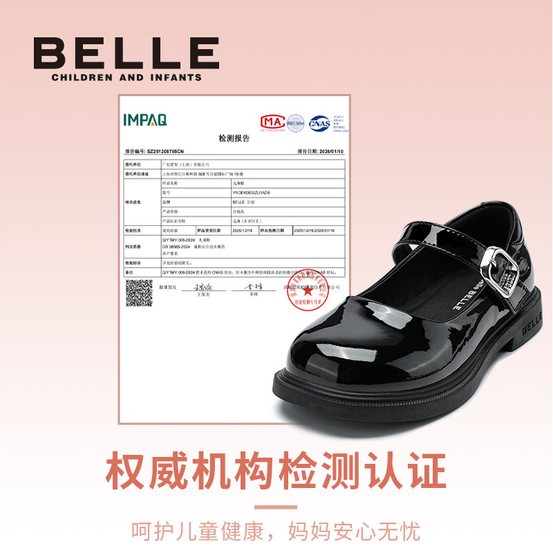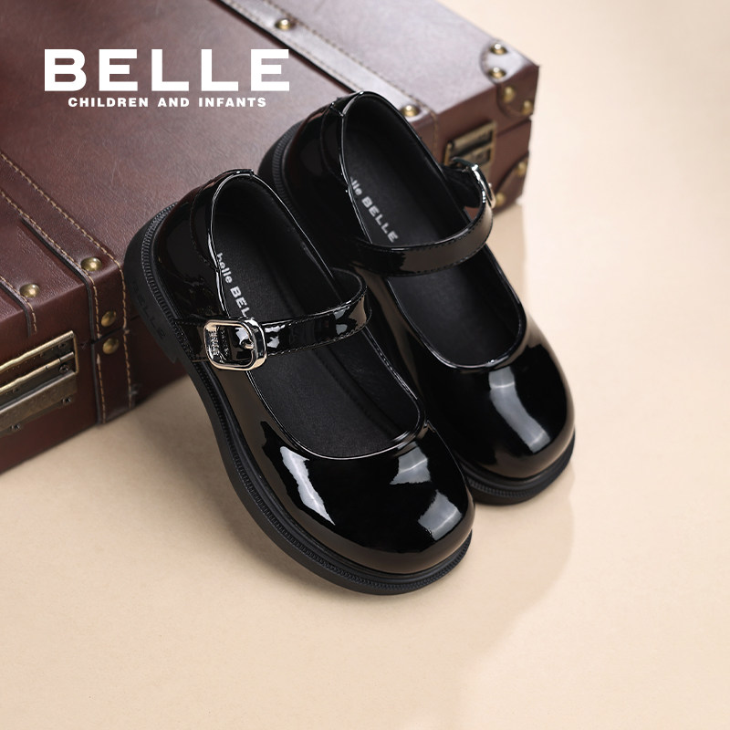 百丽童鞋儿童黑色皮鞋女童玛丽珍鞋小女孩公主鞋春季新款时尚单鞋