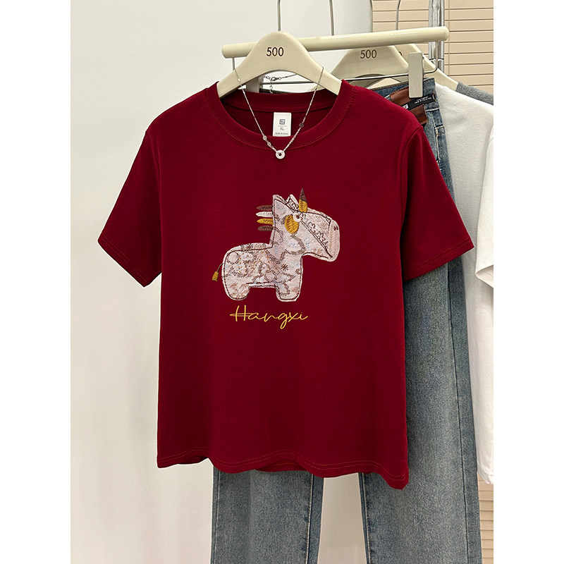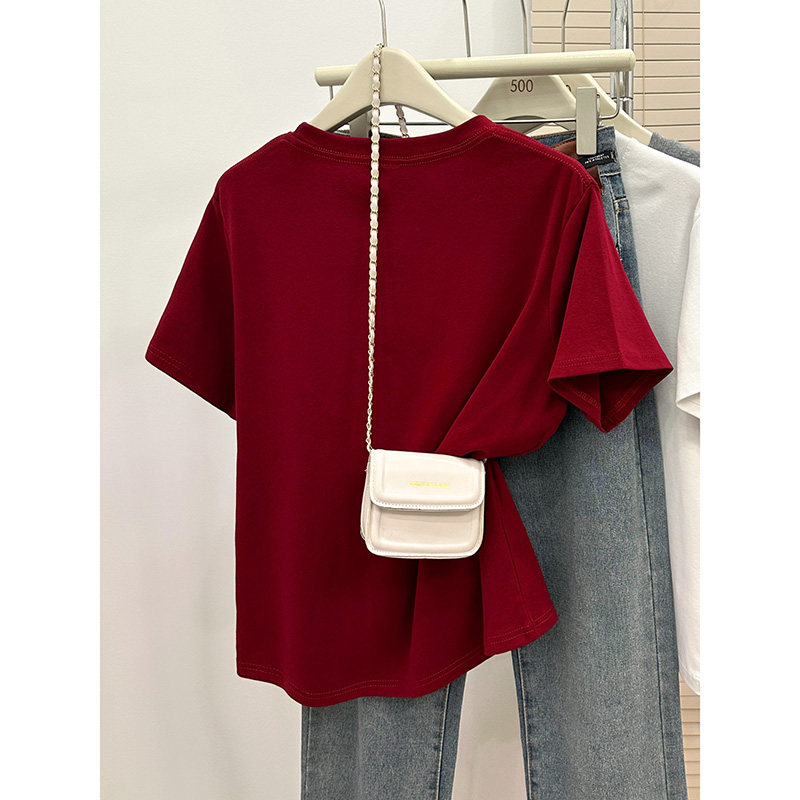 短袖女款爆款2025新款大码遮肚子正肩T恤女夏季圆领显瘦200斤上衣
