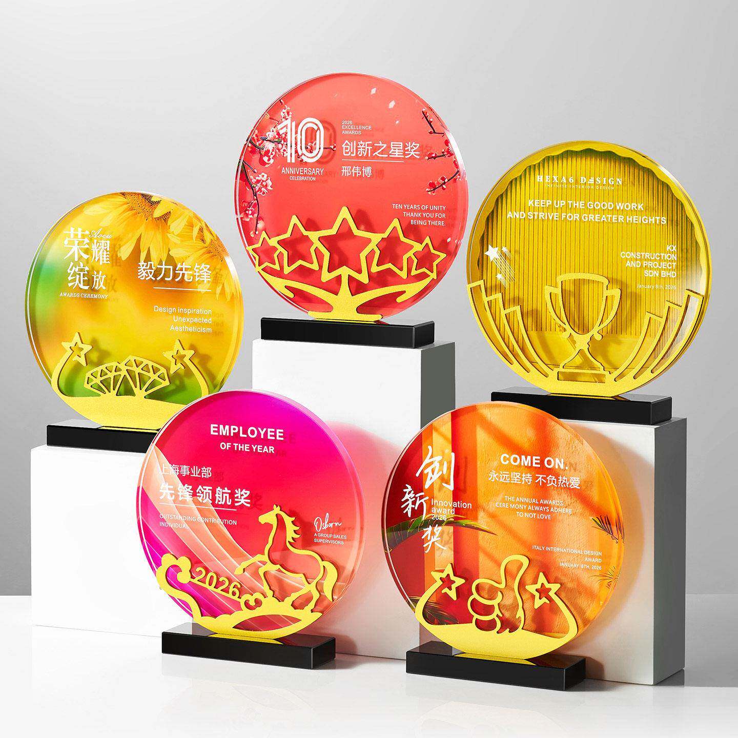 创意水晶奖杯定制金属奖牌企业颁奖纪念品表彰奖品马年新款公司员