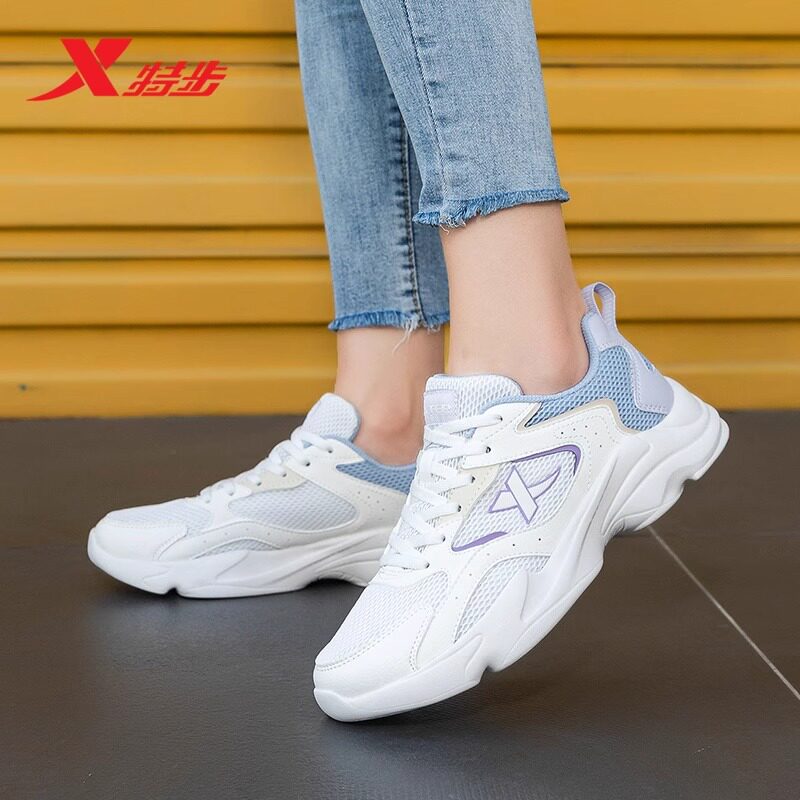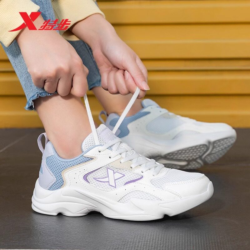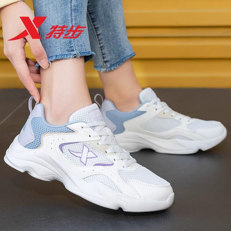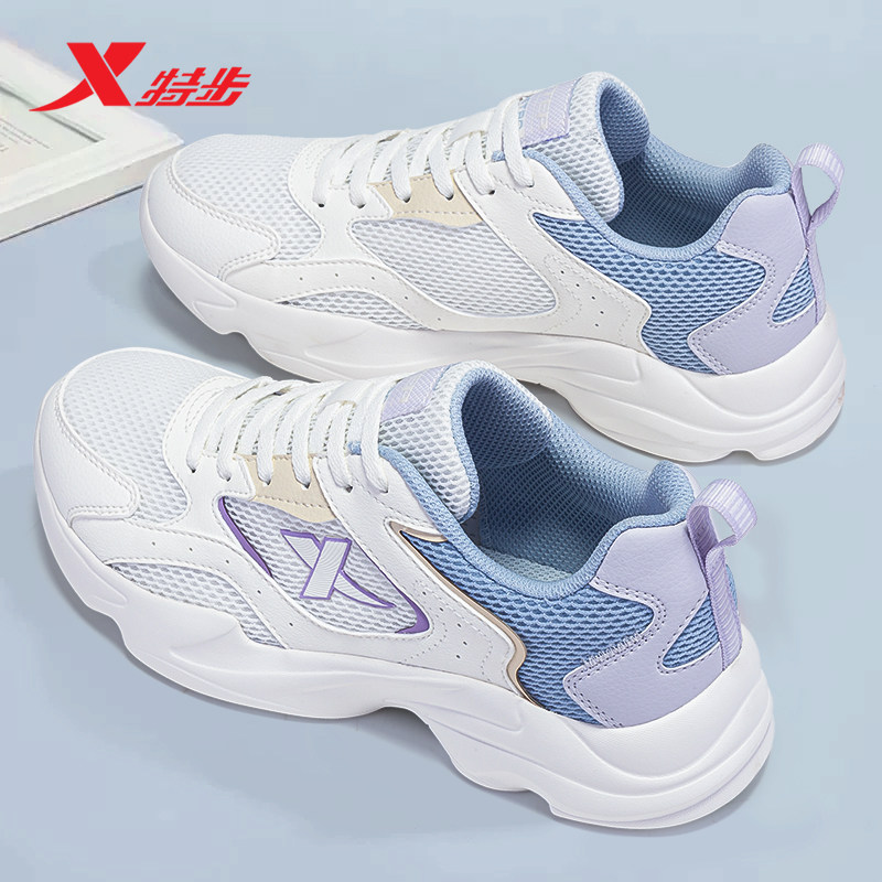 特步女鞋休闲鞋春季新款轻便透气厚底老爹鞋官方正品网面运动鞋女