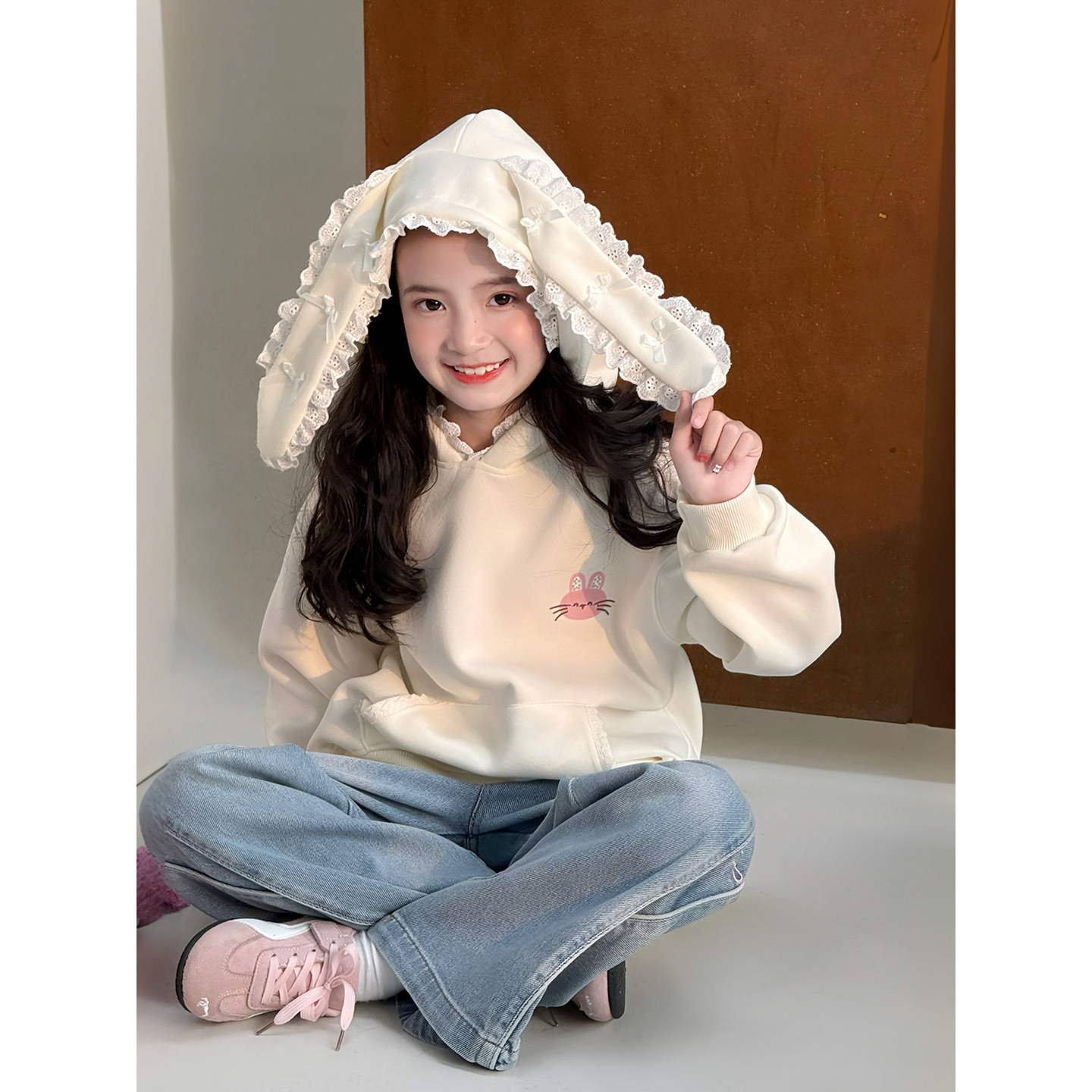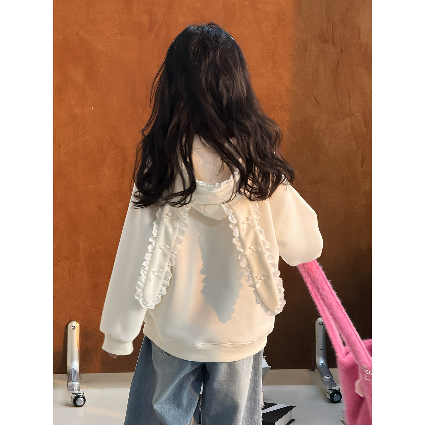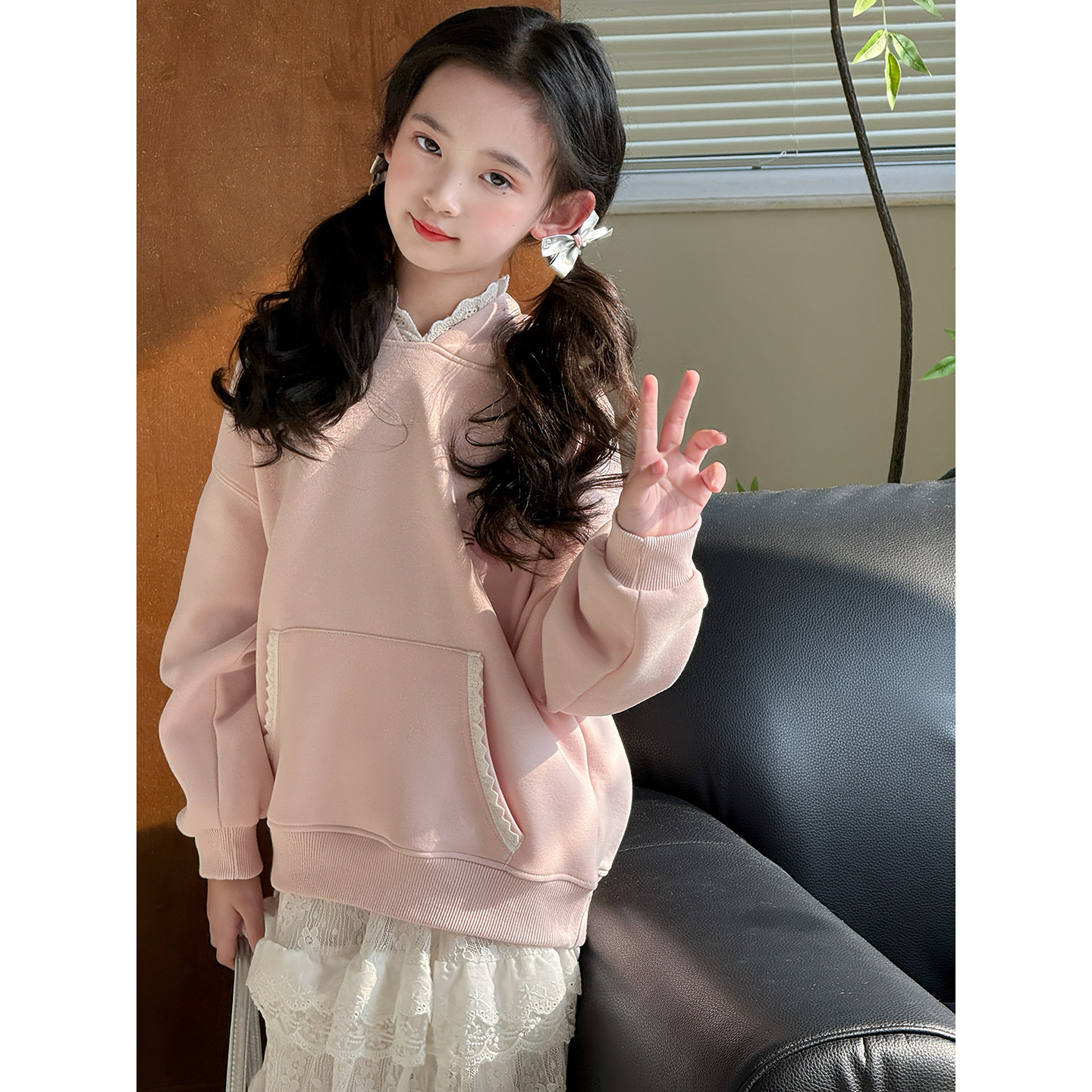 女童卫衣2026春季新款儿童韩版甜美连帽上衣中大童洋气套头衫春装