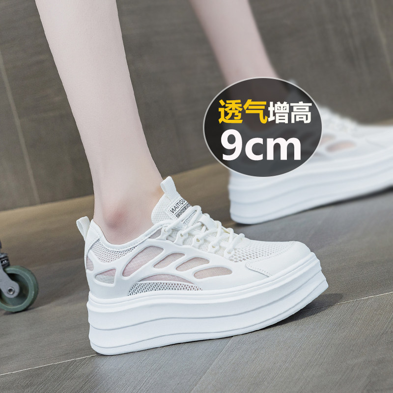 9cm内增高小白鞋女网面透气女鞋2026新款爆款夏天小个子厚底网鞋