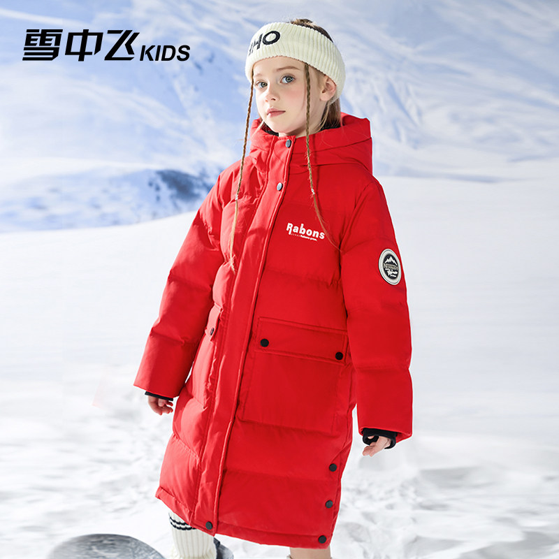 雪中飞儿童羽绒服2025新款男女童长款过膝工装加厚洋气中大童外套