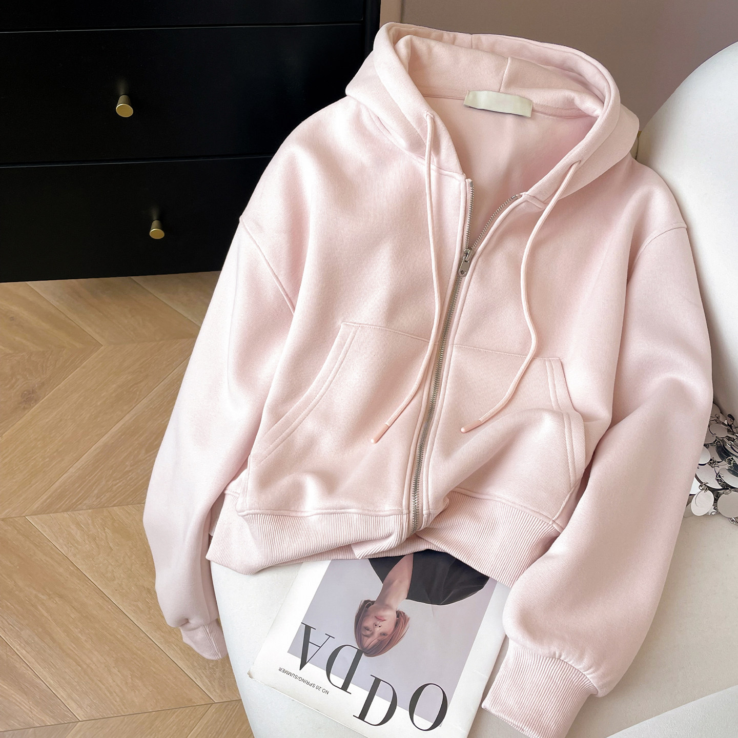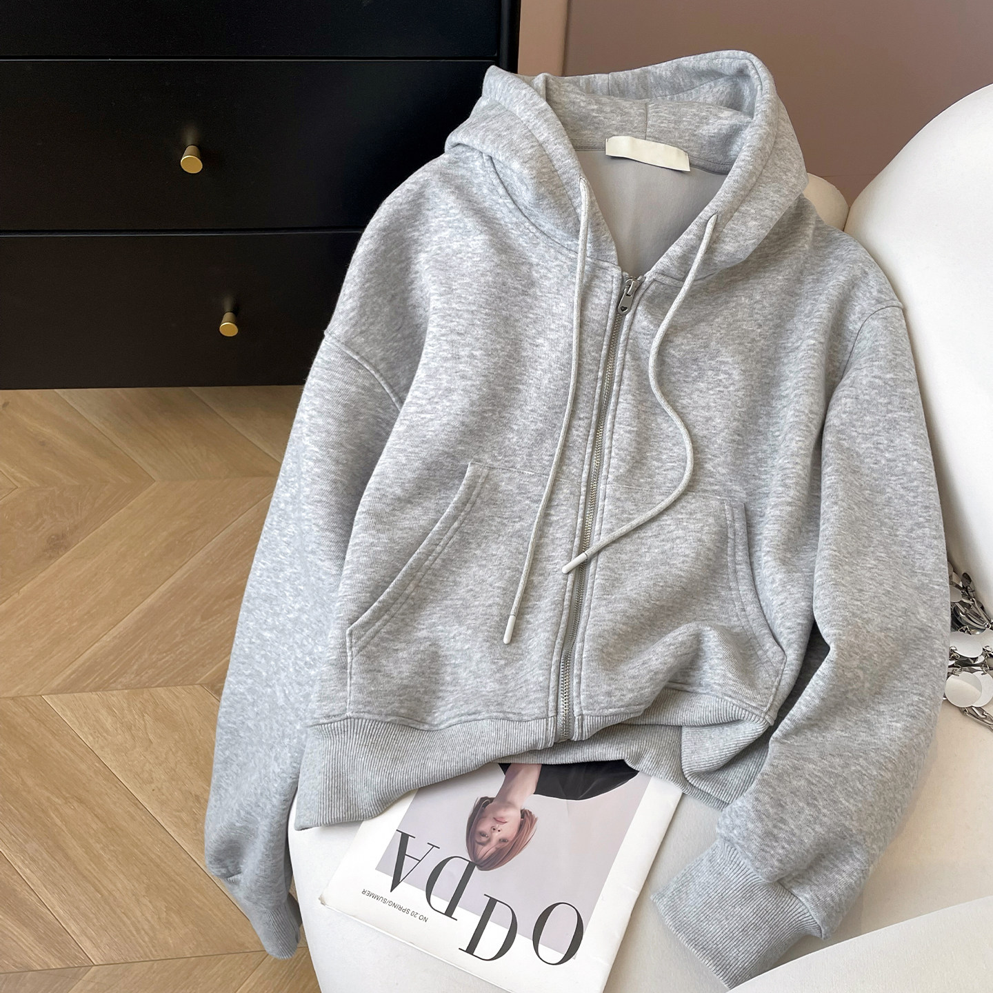 小C家 纯色连帽卫衣女款2026新款春季宽松慵懒风韩版开衫拉链外套