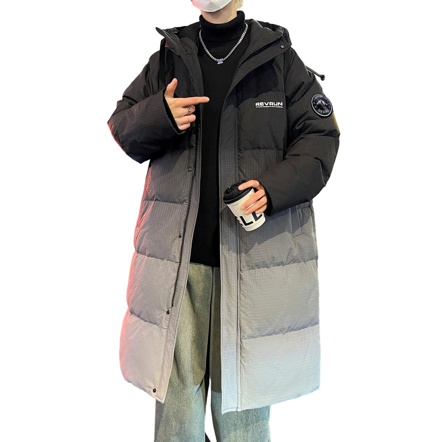 德国青少年中长款渐变羽绒服男孩初中高中学生加厚白鸭绒外套大童