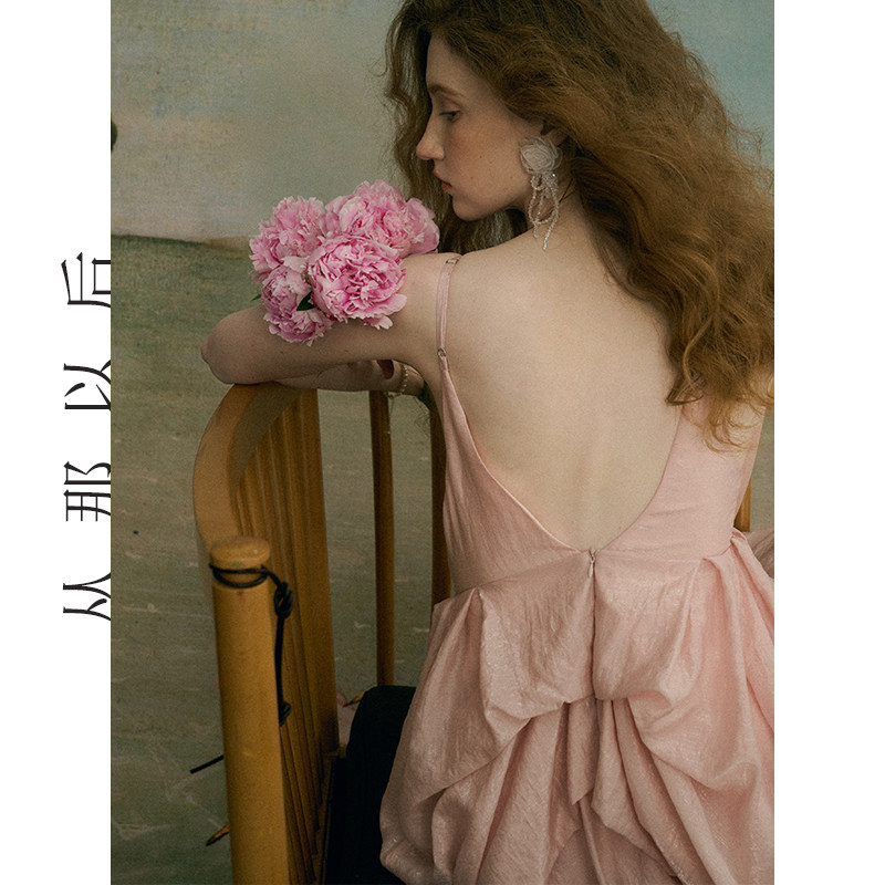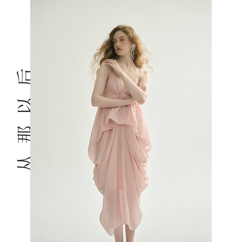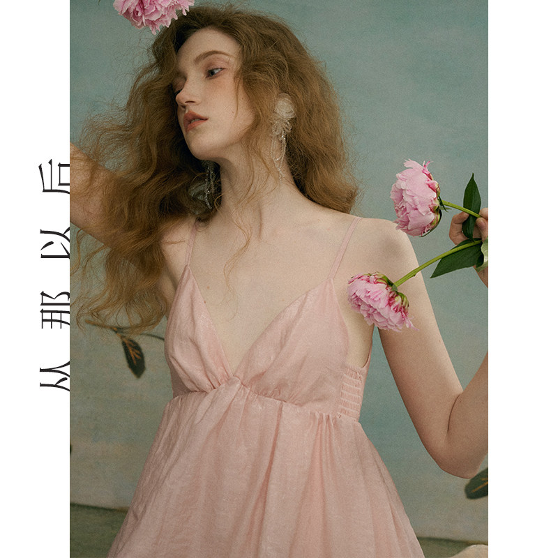 从那以后海岛挂脖吊带裙长裙海边度假礼服穿搭小裙子粉色连衣裙女