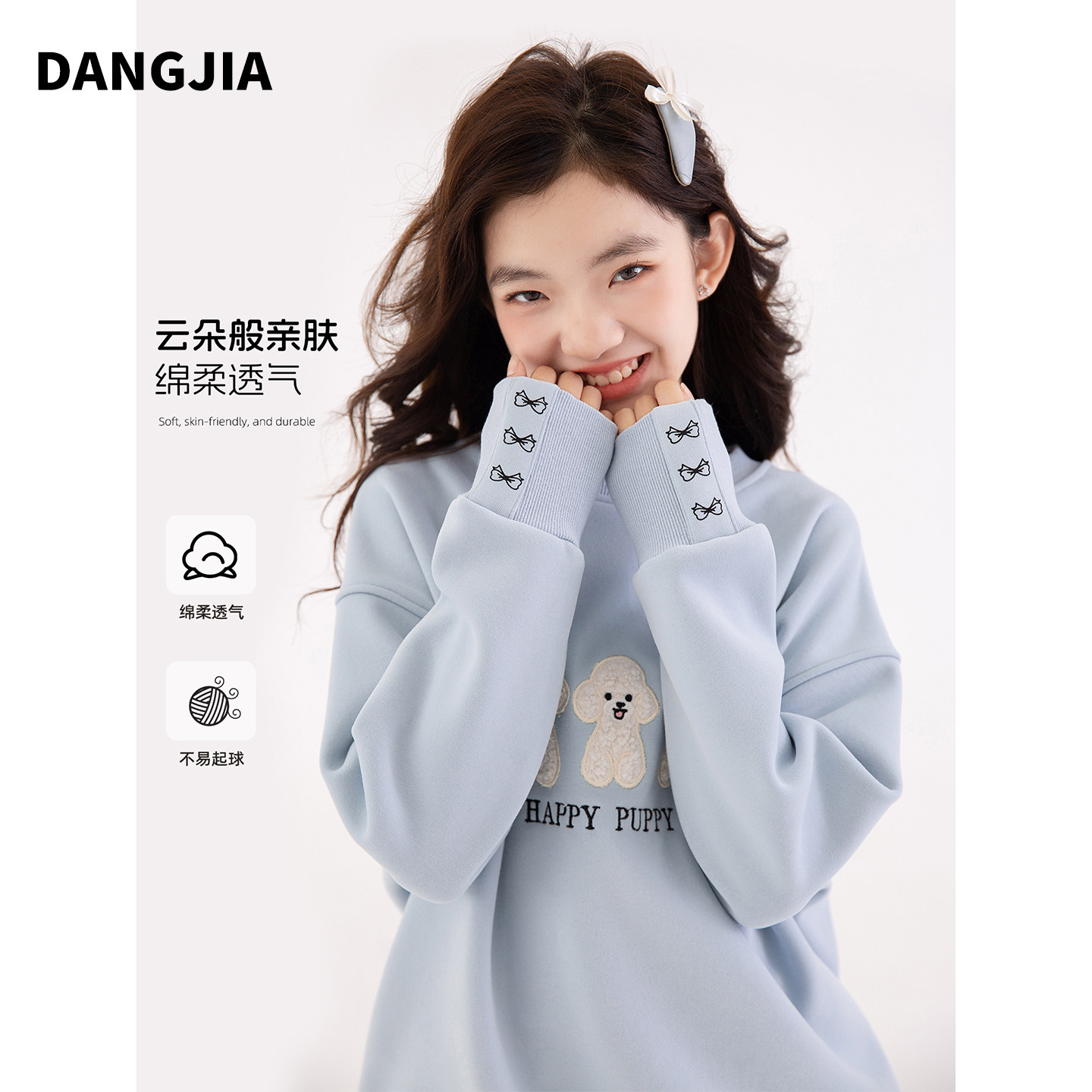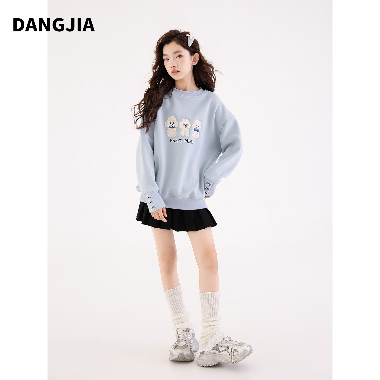 女童卫衣2026春秋装新款蓝色中大童初中生女孩上衣巨好看儿童宽松