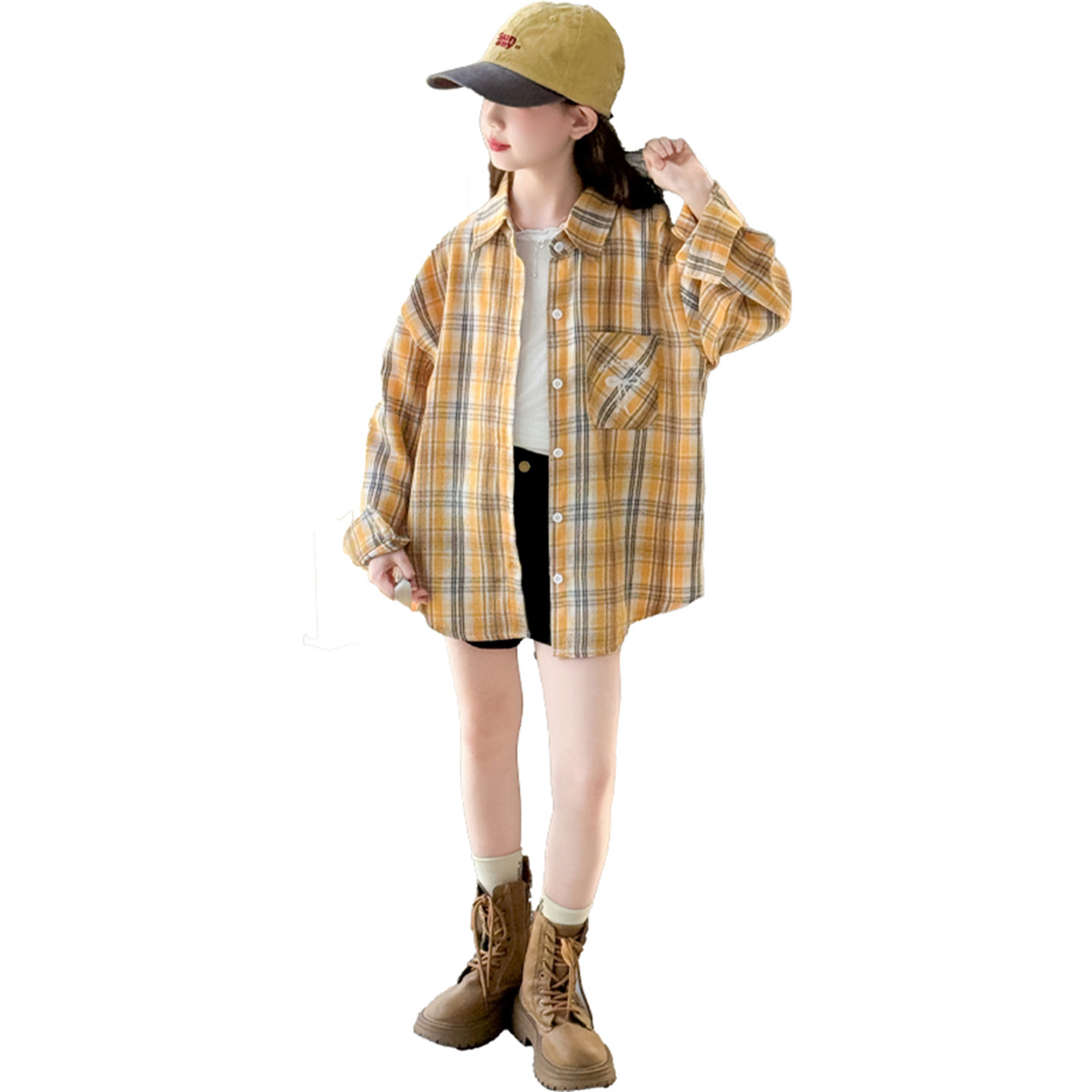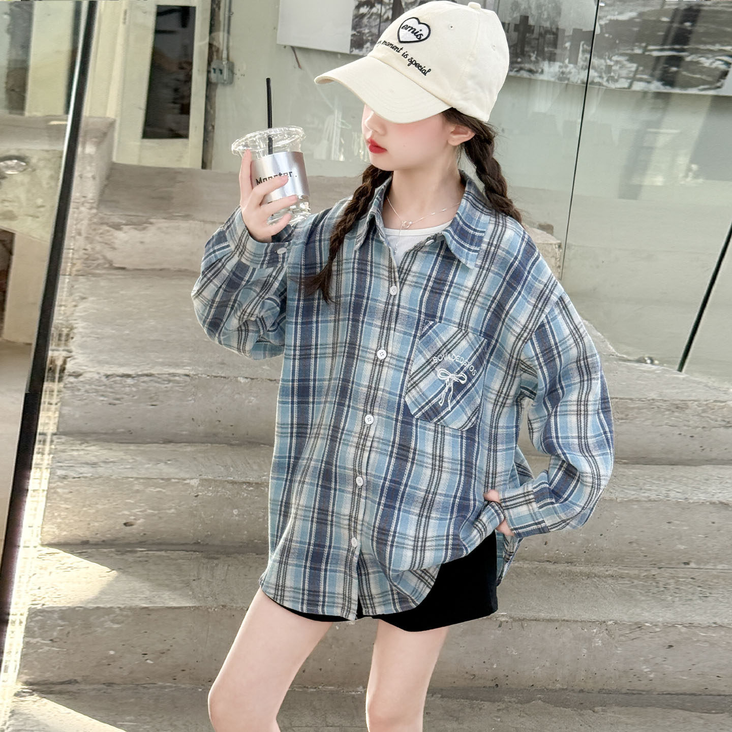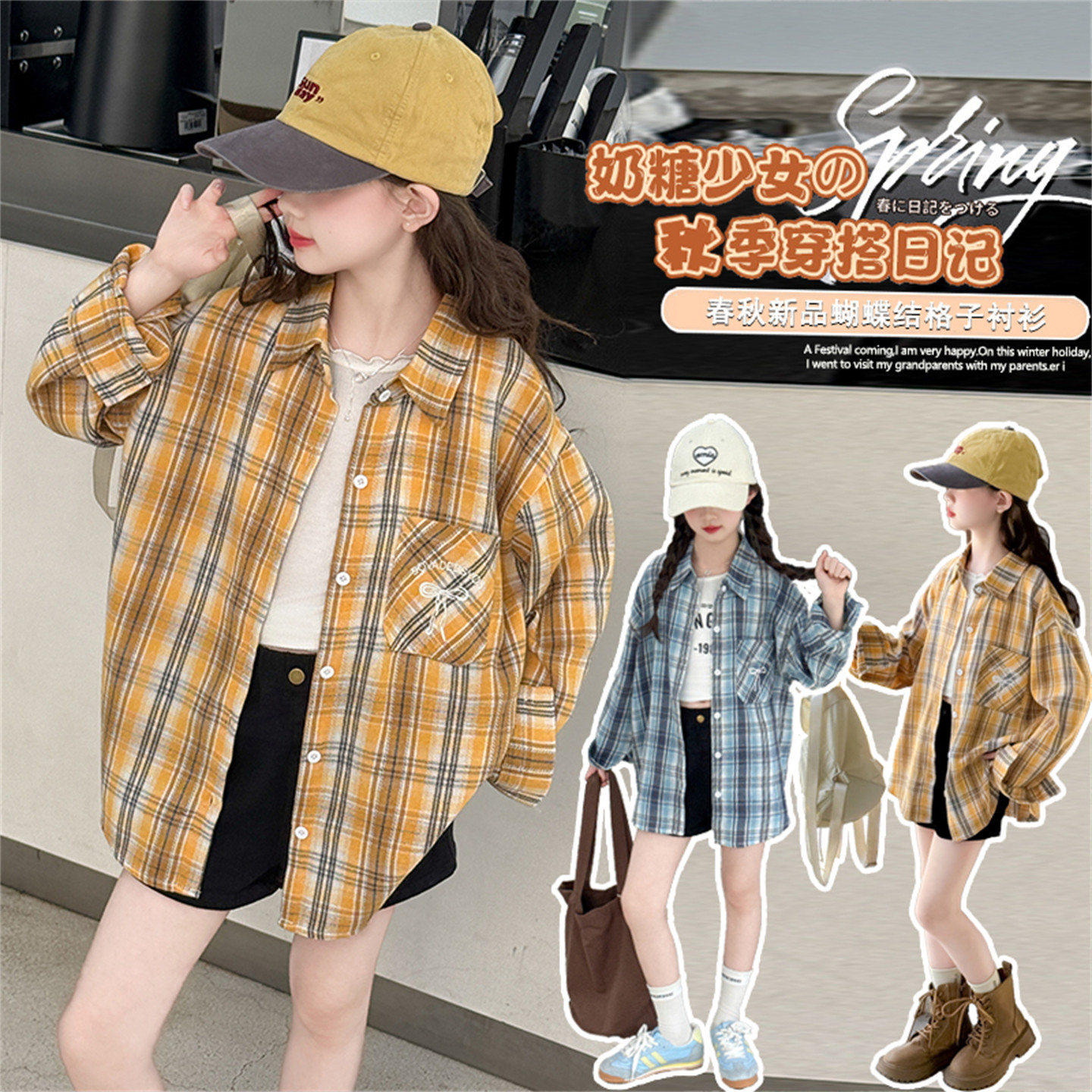 女童衬衫春秋款2026新款春装儿童格子衬衣外套中大童洋气春季上衣