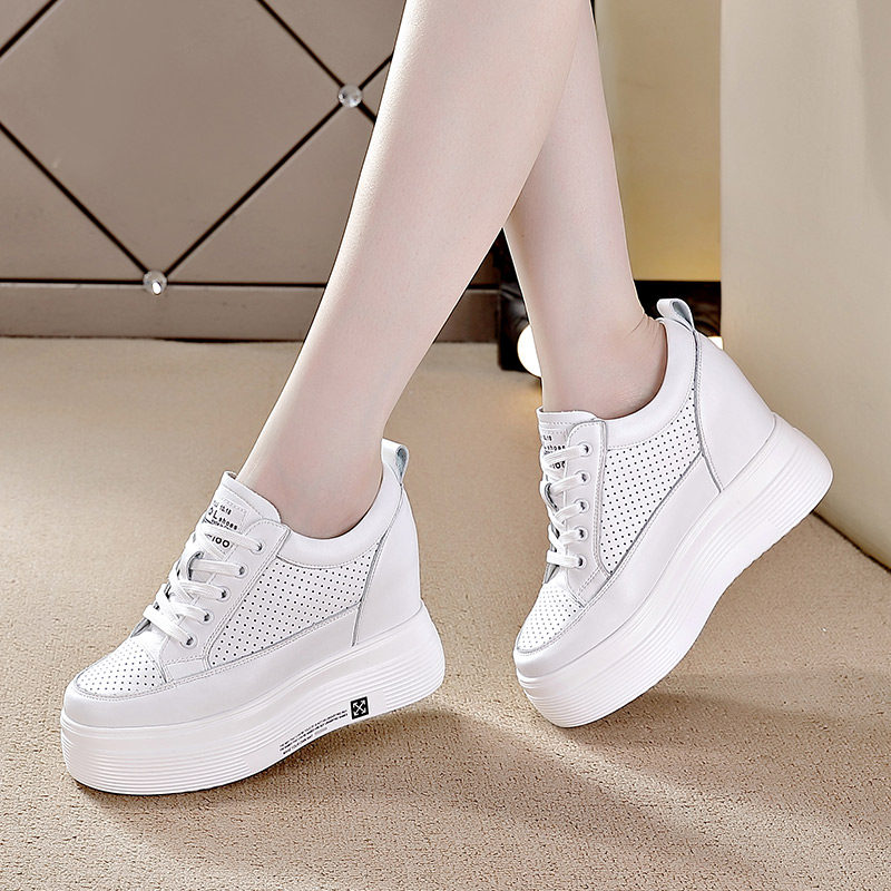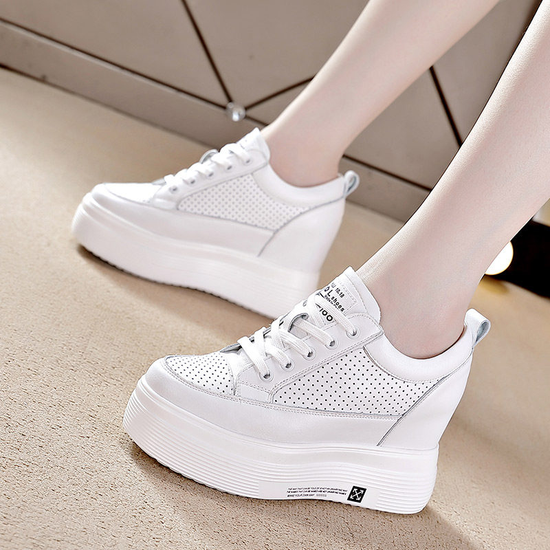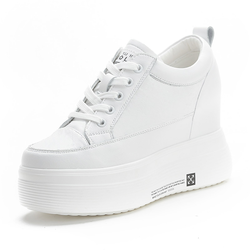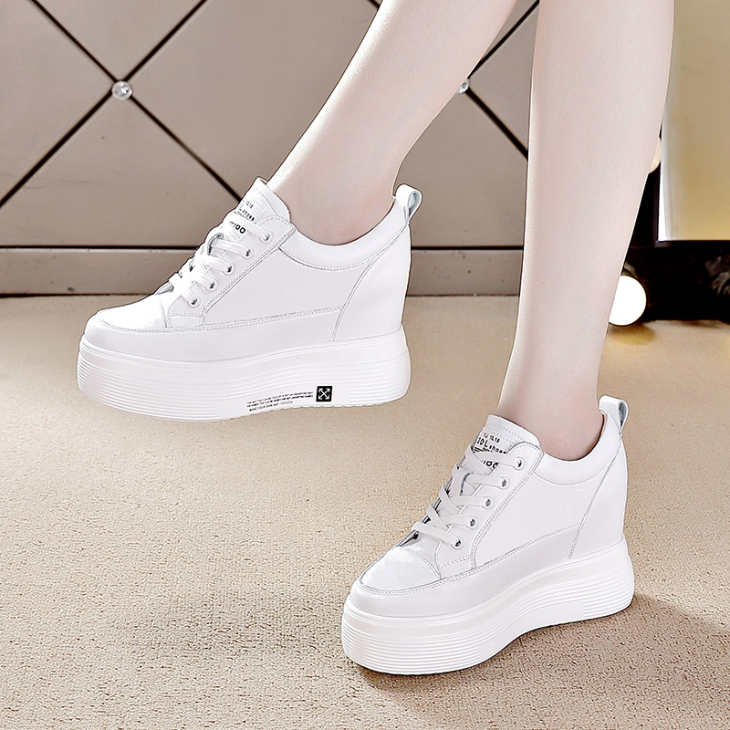 内增高女鞋10cm增高秋季新款真皮小白鞋高跟白鞋休闲厚底松糕单鞋