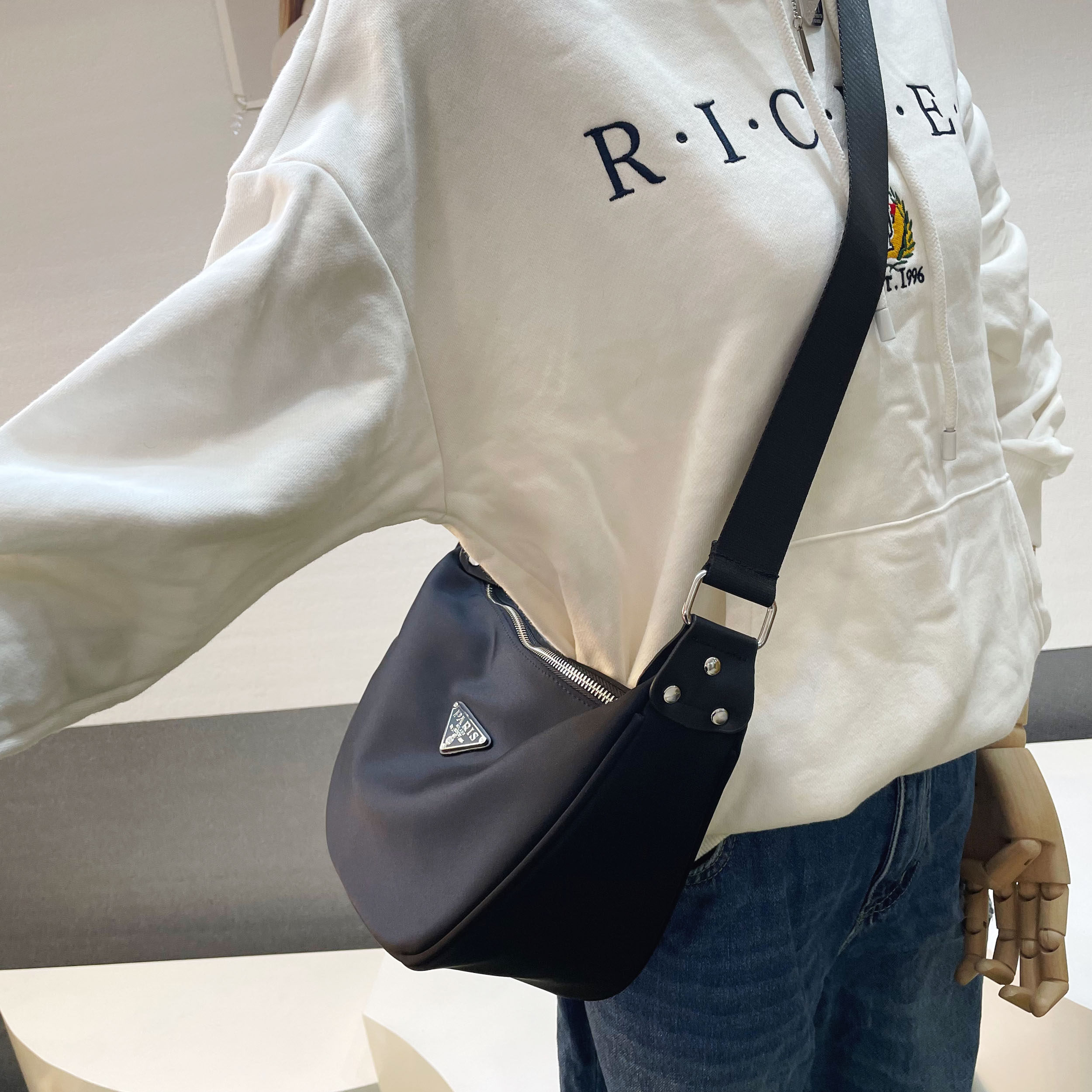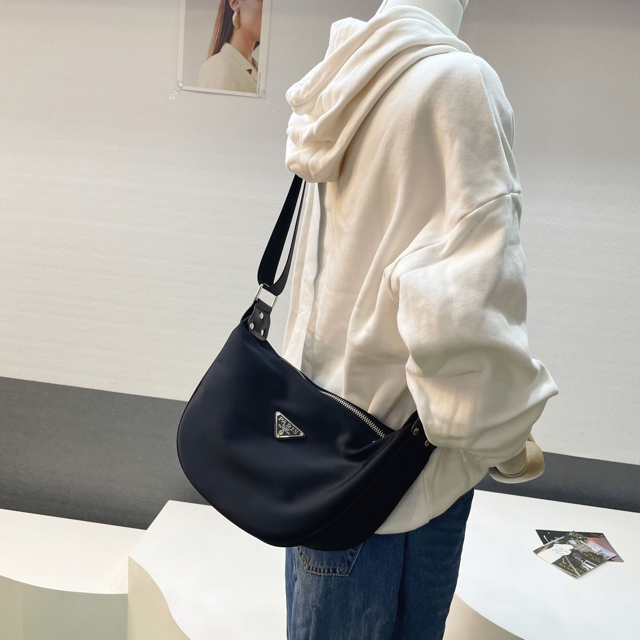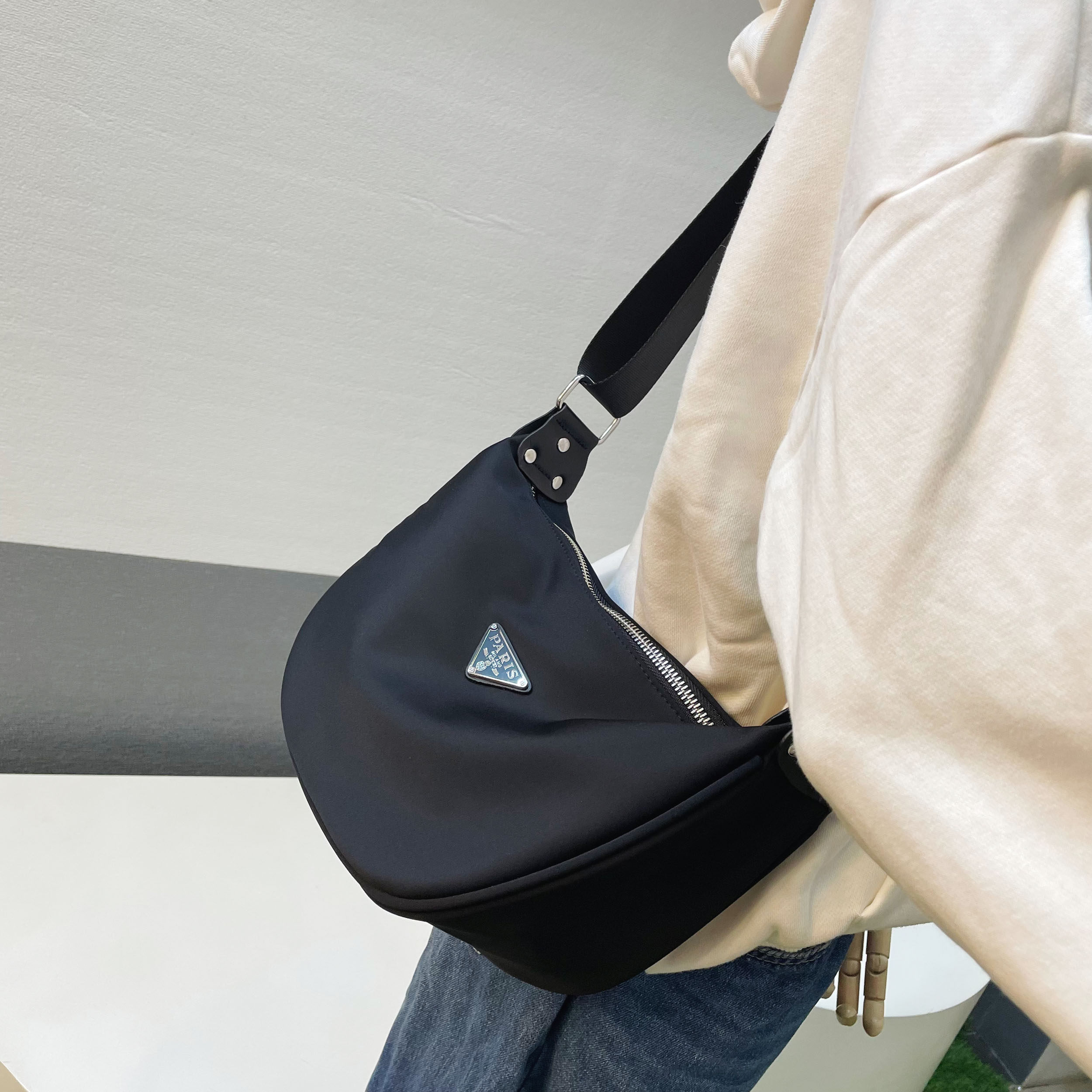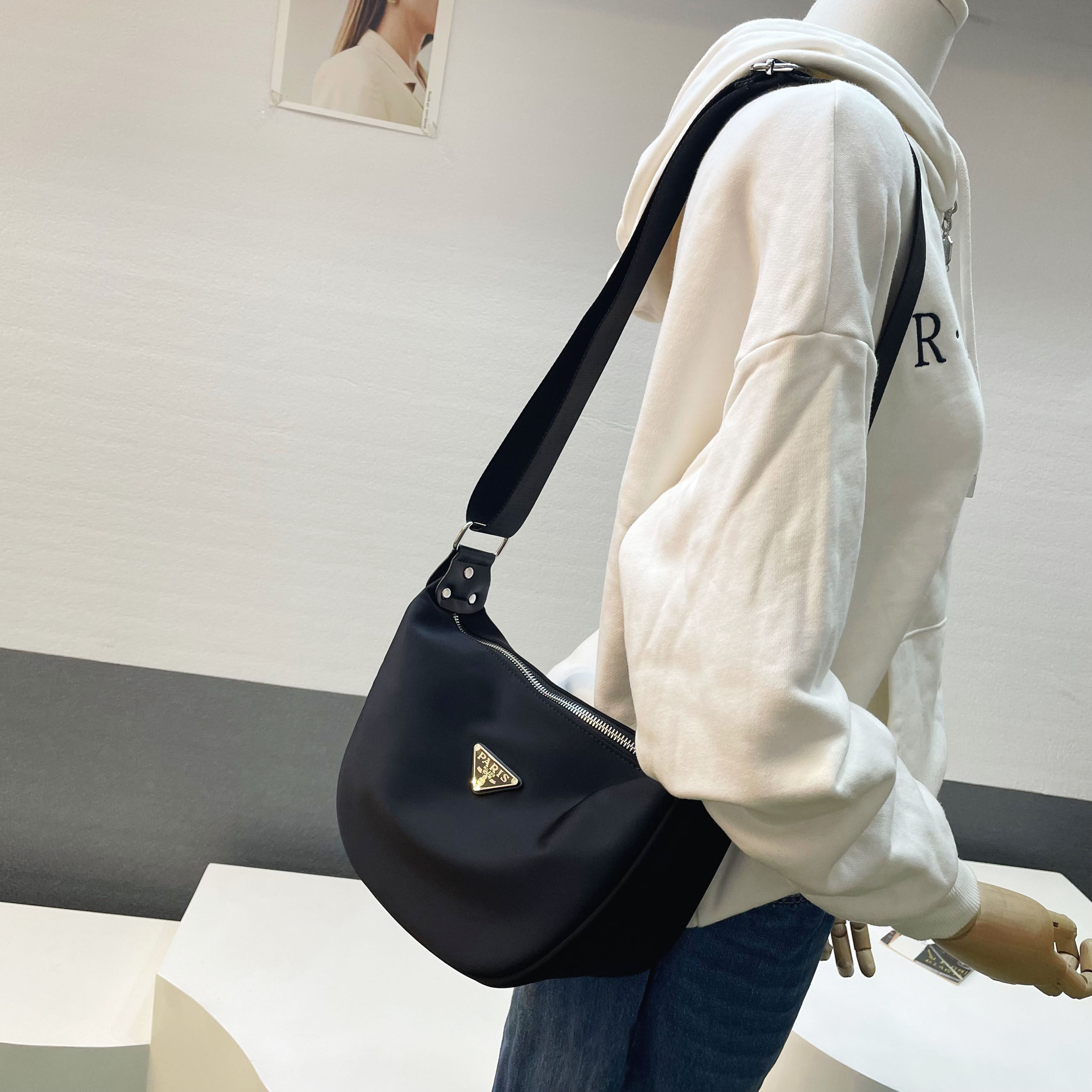 2026新款日常通勤大容量轻便饺子包百搭休闲防水三角标中性斜挎包
