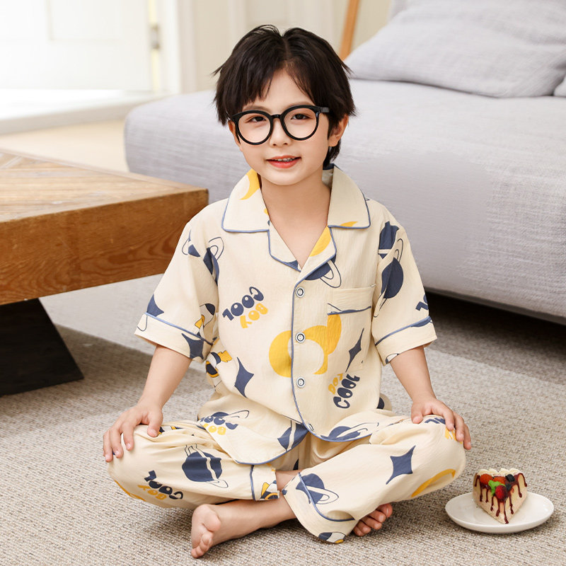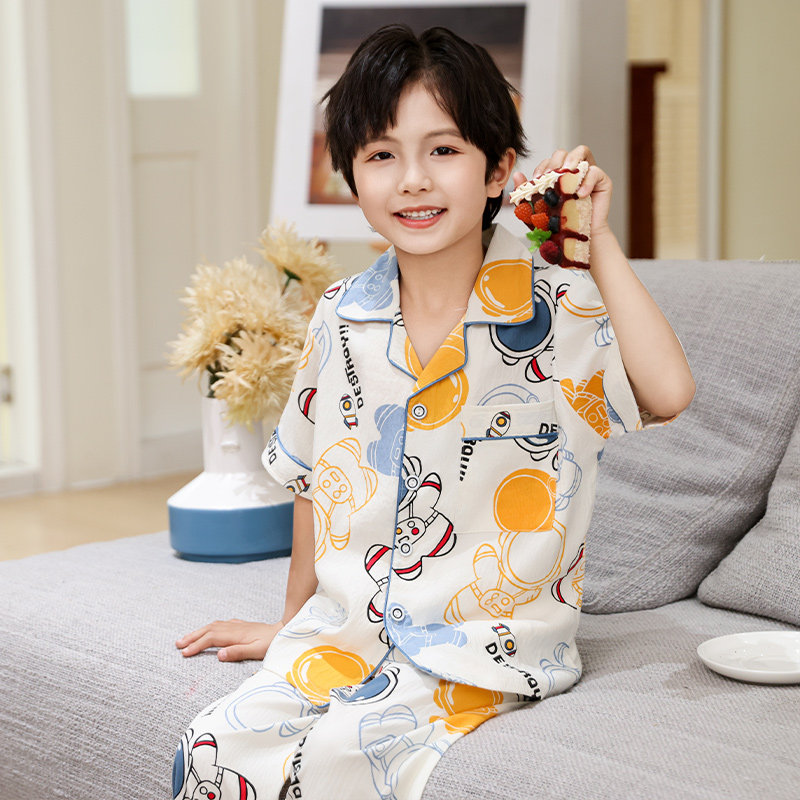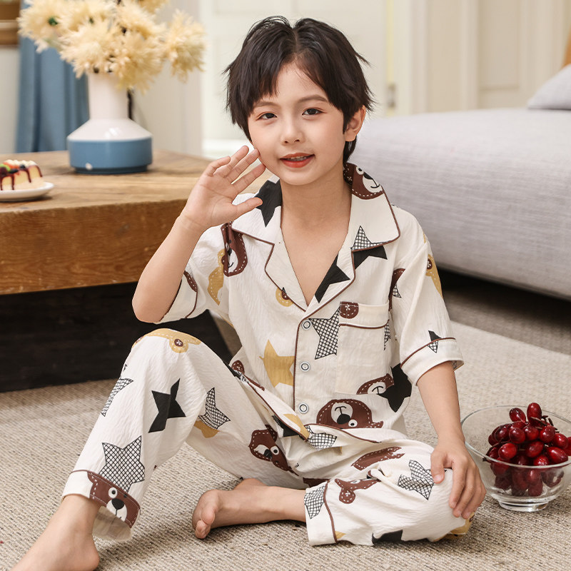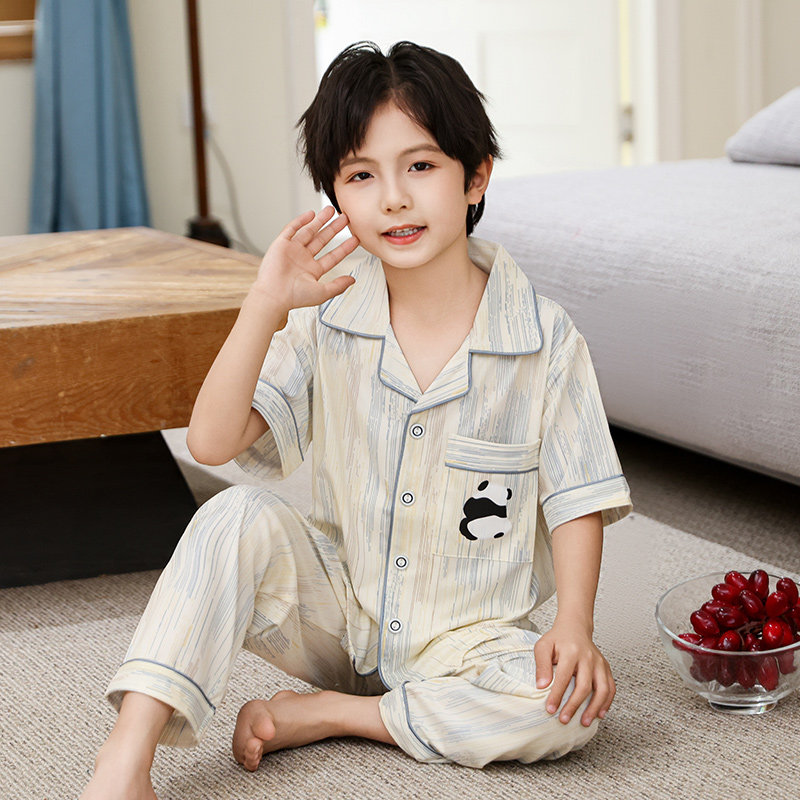 儿童睡衣男童薄款夏季短袖长裤云朵棉中大童小男孩空调家居服套装