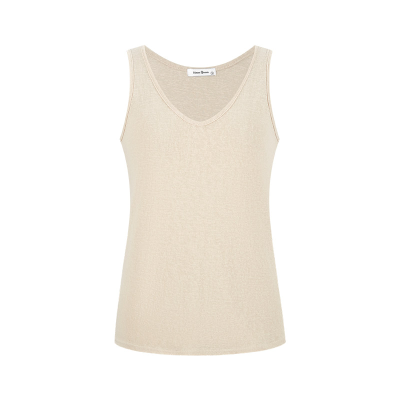 MosesQueen魔西女王白色棉麻吊带背心女夏季外穿v领内搭打底上衣