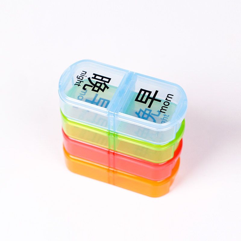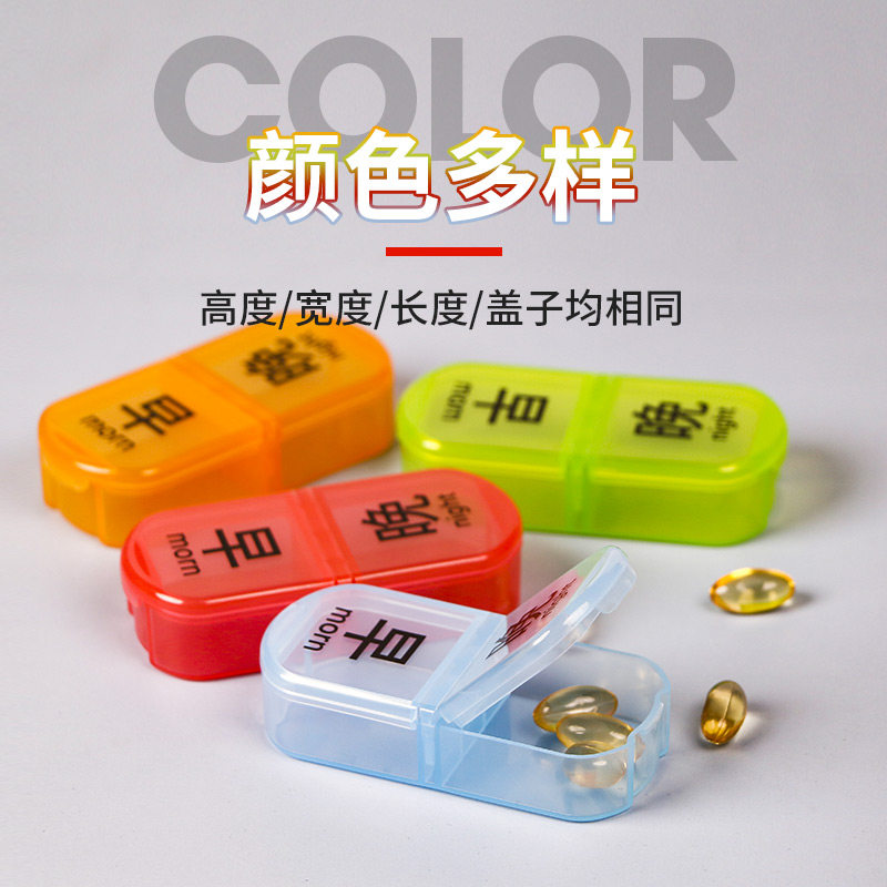 早晚2格小药盒随身便携式一天药片分装盒切药器大容量密封7天药盒