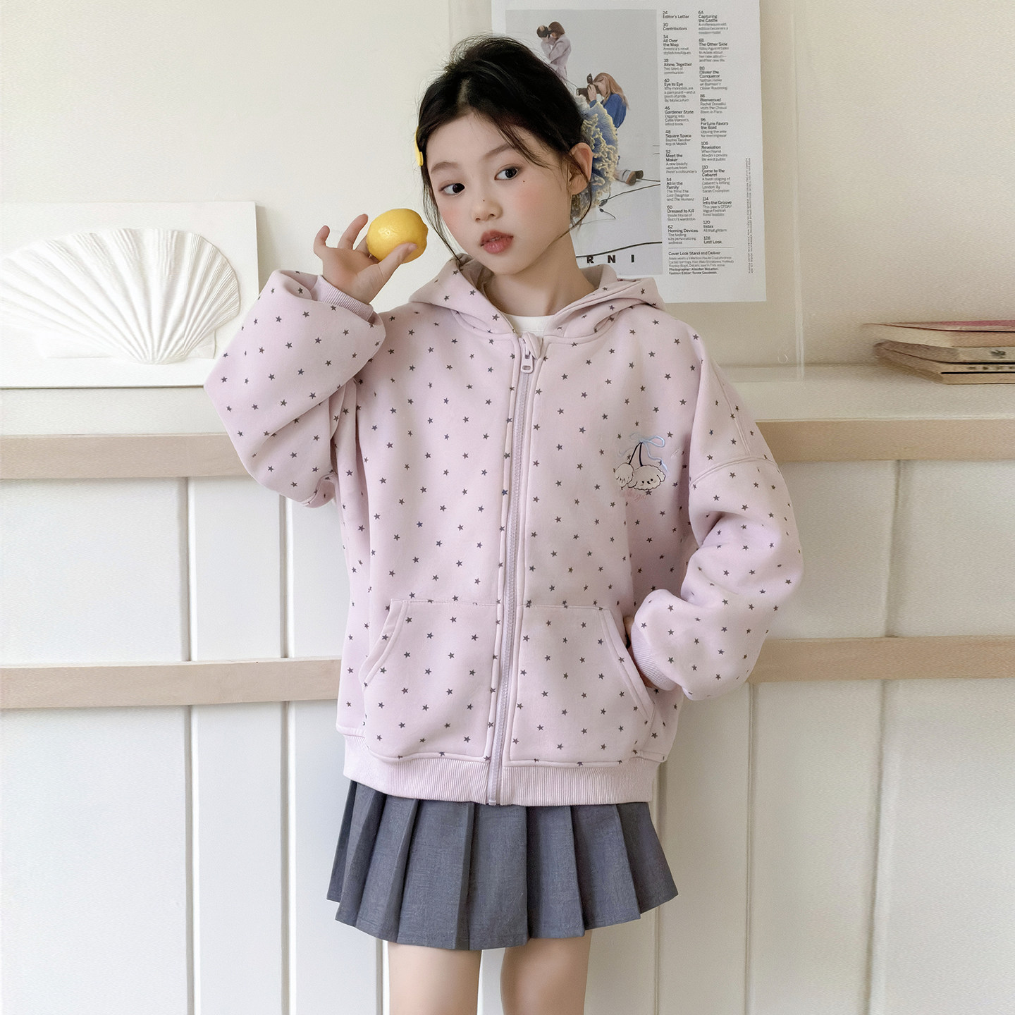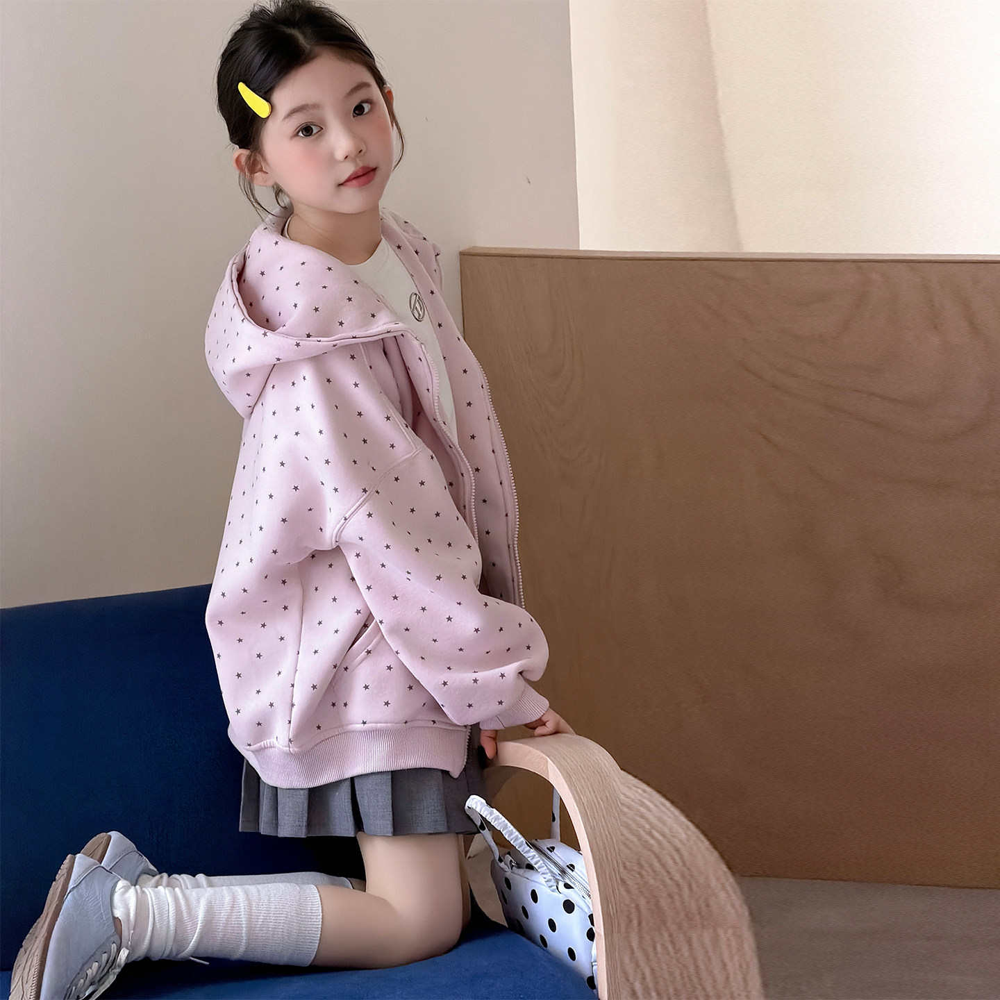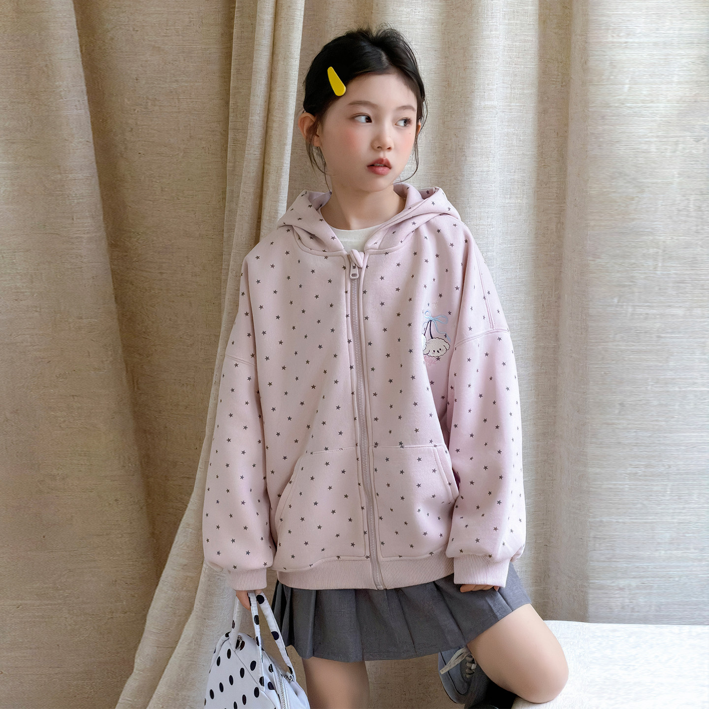女童外套春秋新款大童超好看洋气上衣儿童时髦小女孩连帽卫衣春装