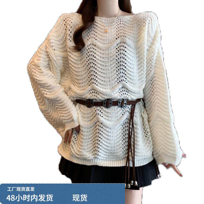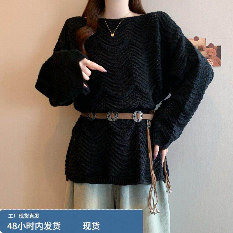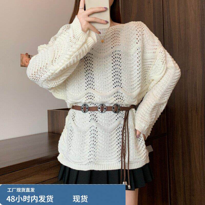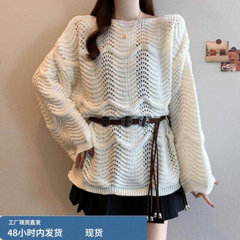 早春2026新款镂空针织罩衫大码女装胖mm洋气宽松慵懒薄款毛衣上衣