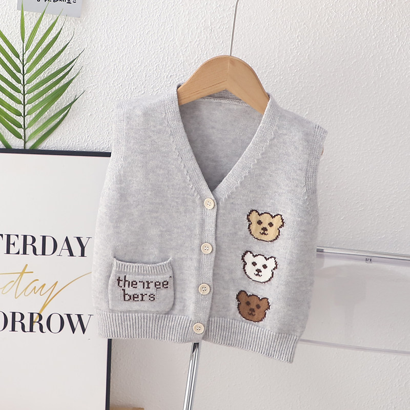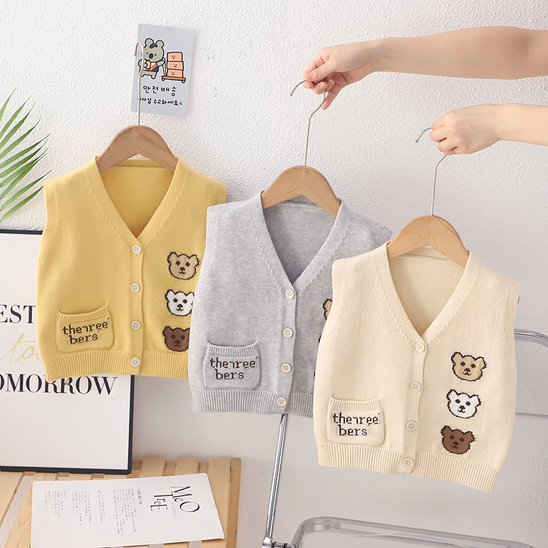 儿童背心 秋冬季百搭男童针织衫马甲 女童宝宝开衫坎肩薄款毛衣春