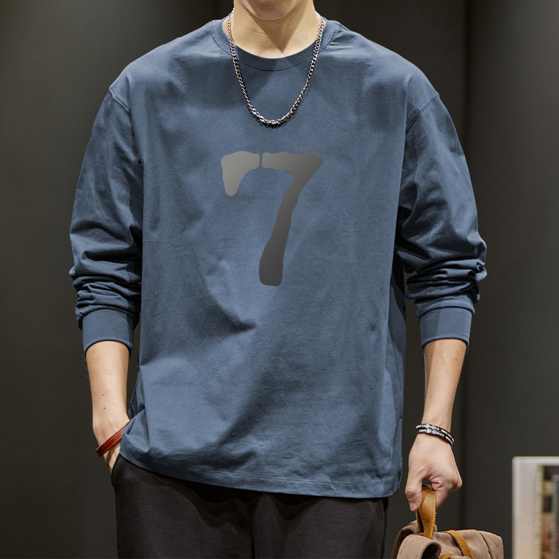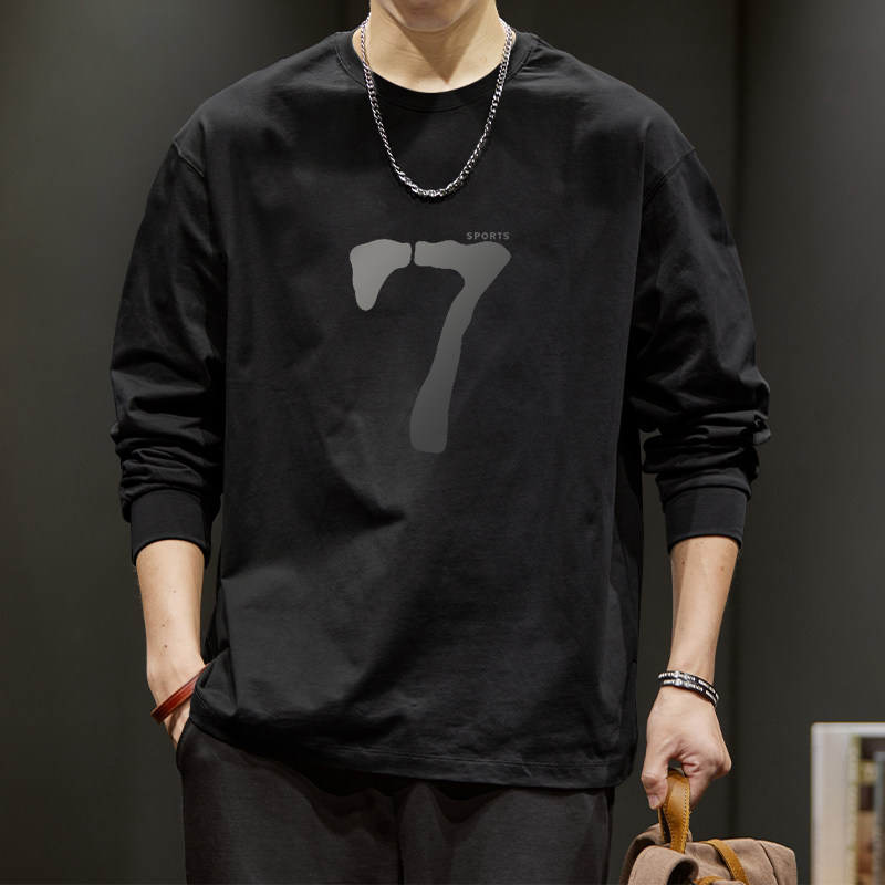 纯棉长袖t恤男士秋季潮牌大码圆领休闲卫衣薄款青少年内搭打底衫