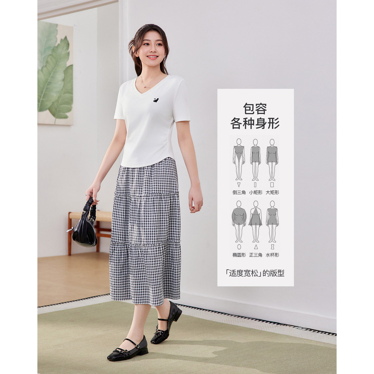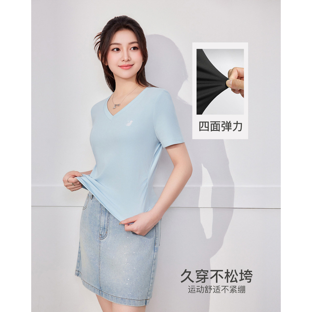 IEF/爱依服【微胖】大码女装T恤2026夏新款V领短袖上衣内搭打底衫