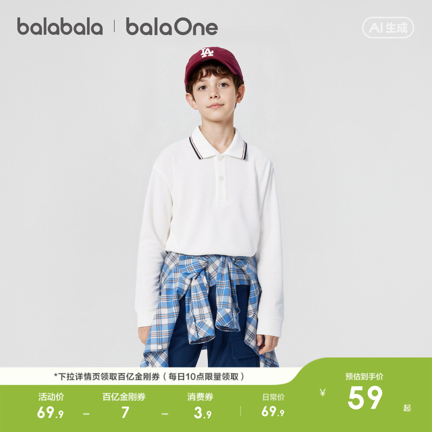 巴拉巴拉童装儿童长袖t恤男童2026春季新款POLO衫百搭大童上衣潮