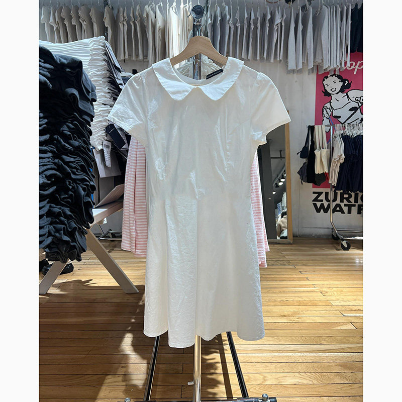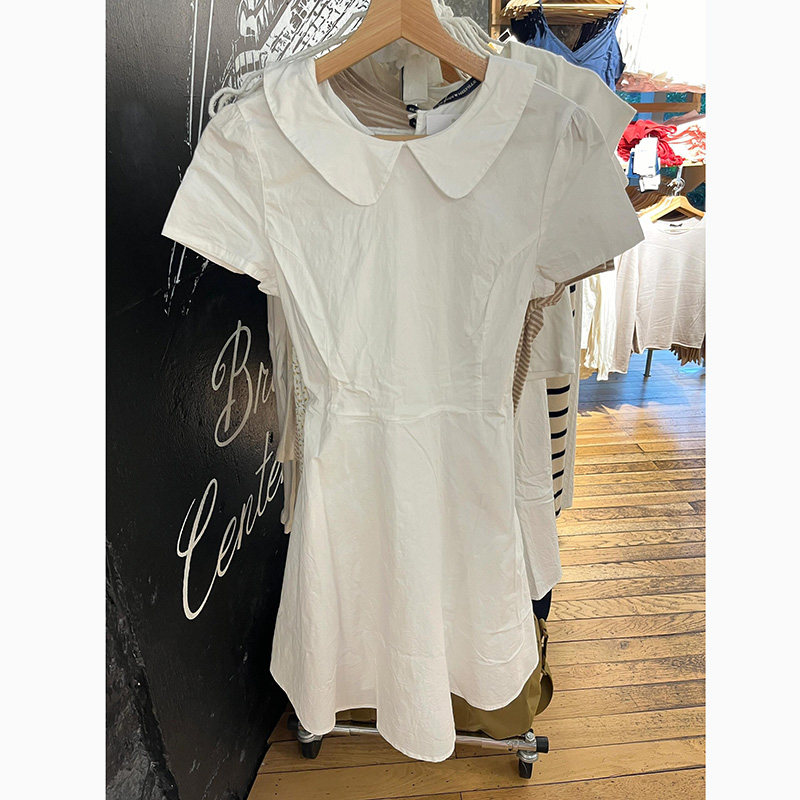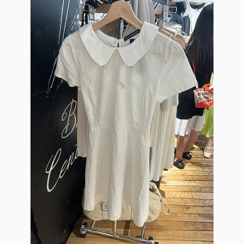 BM新款娃娃领收腰系带裙子小个子连衣裙女bm修身白色长裙衬衫裙夏