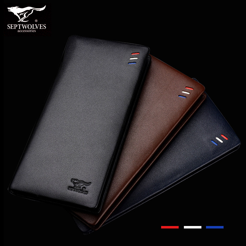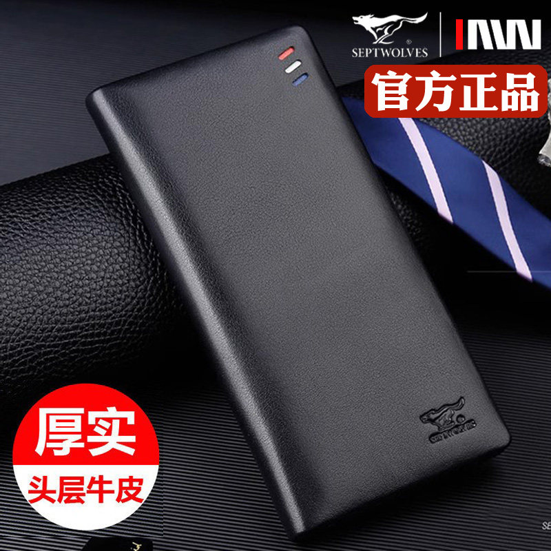 七匹狼男士钱包长款真皮纯牛皮正品牌拉链钱夹多卡位品牌皮夹2026