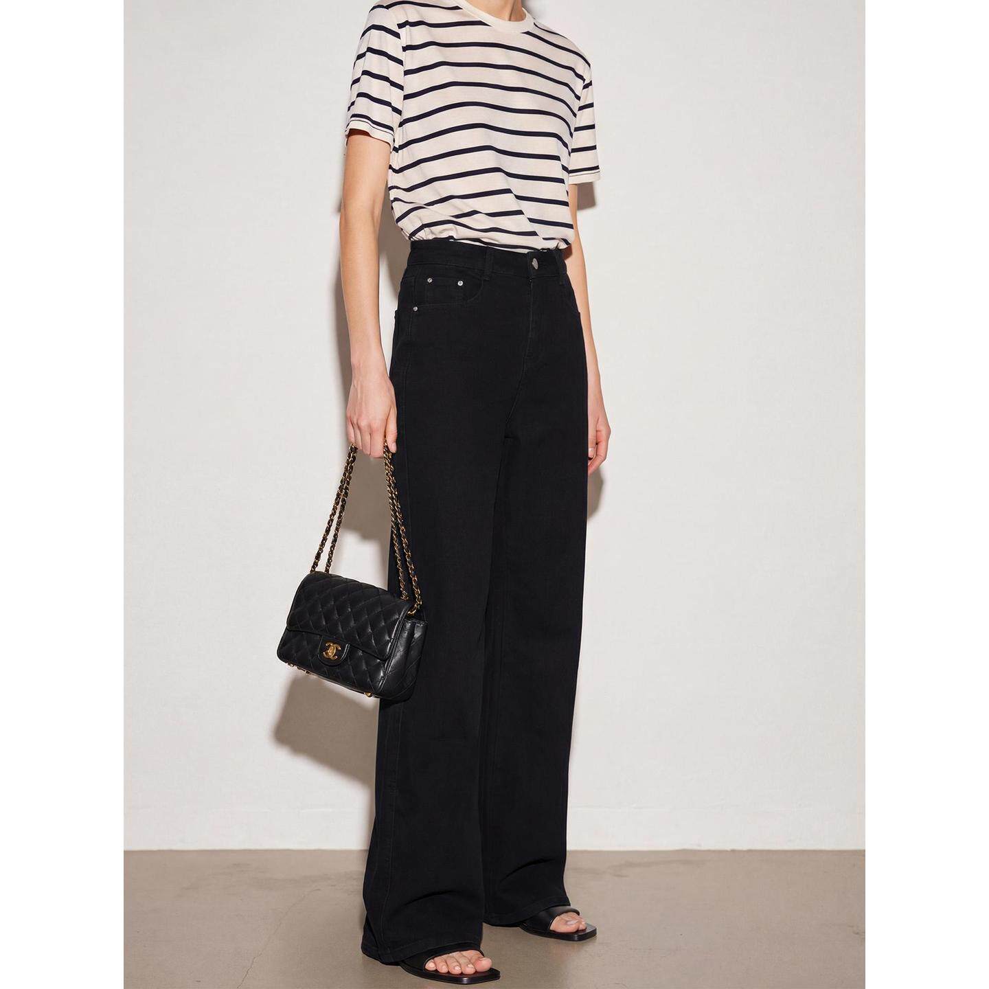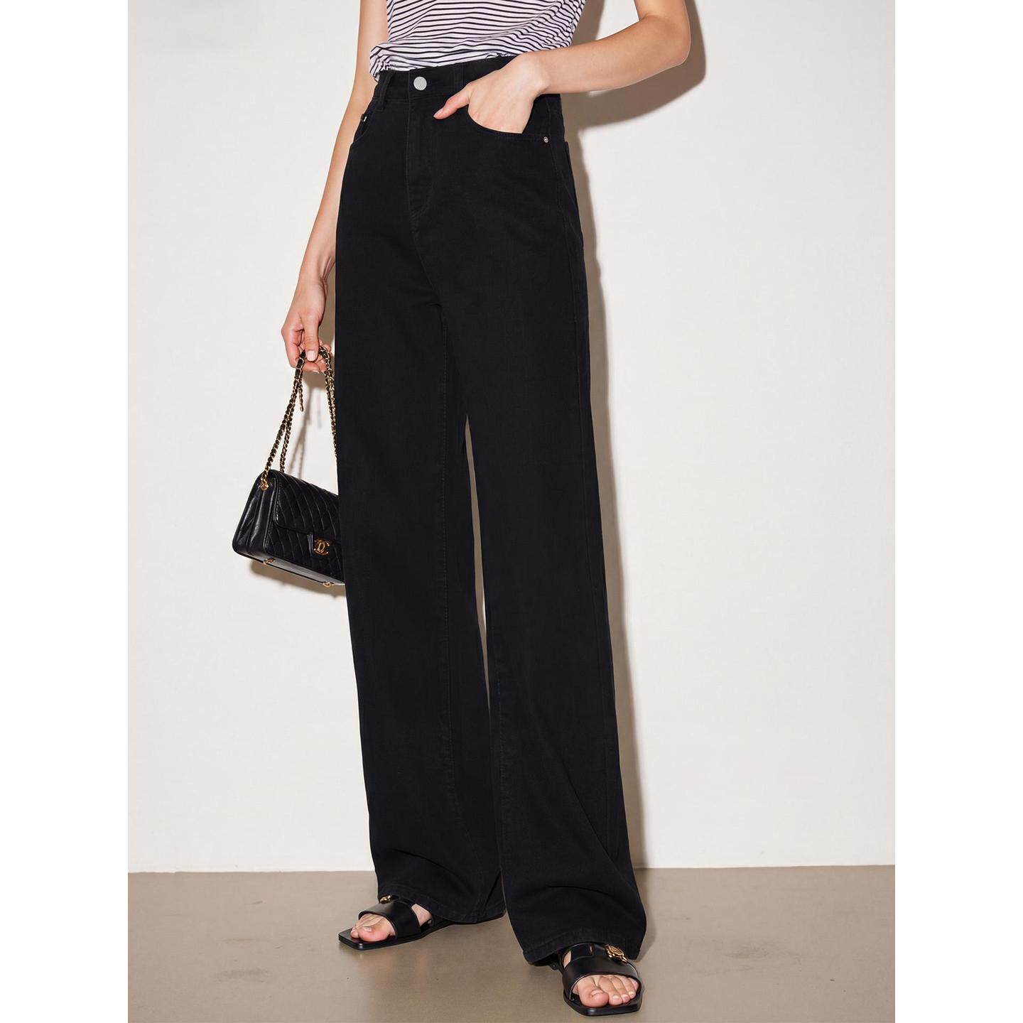 Basic House/百家好黑色阔腿牛仔裤女2026春季新款高腰显瘦直筒裤