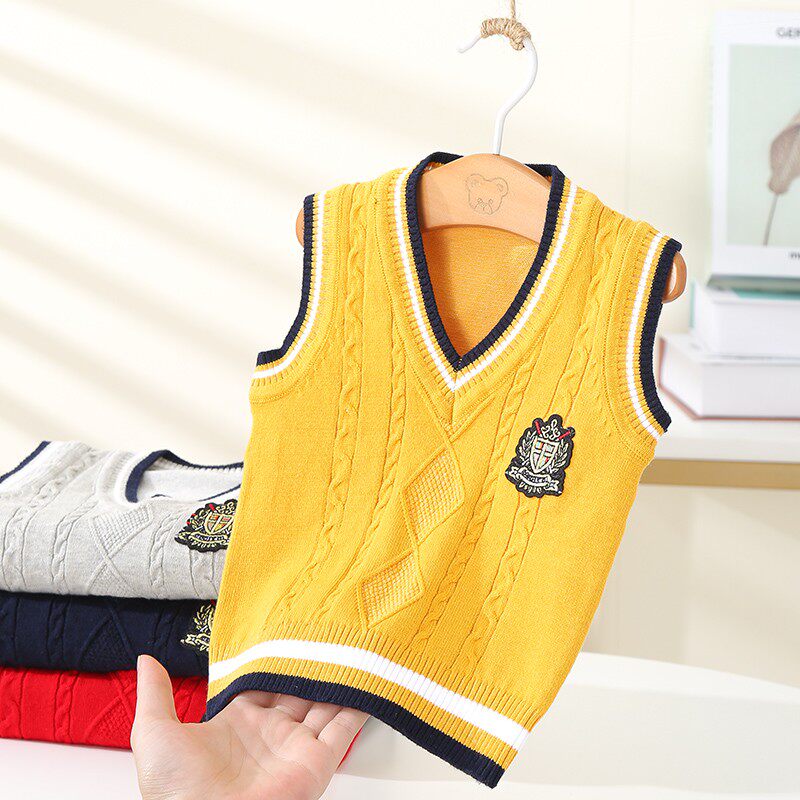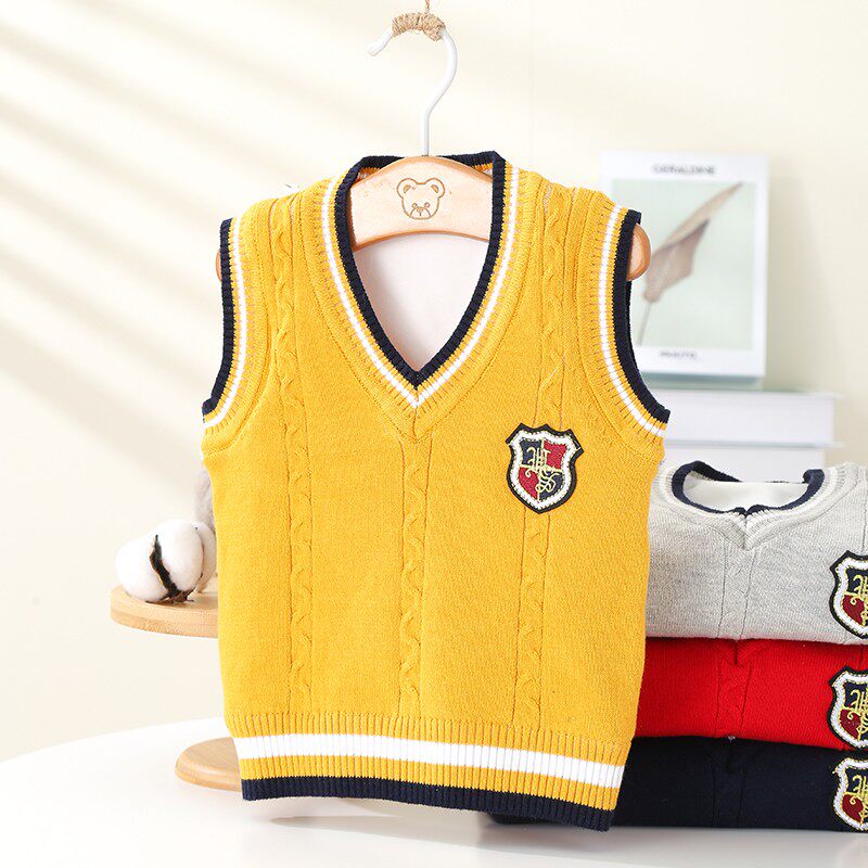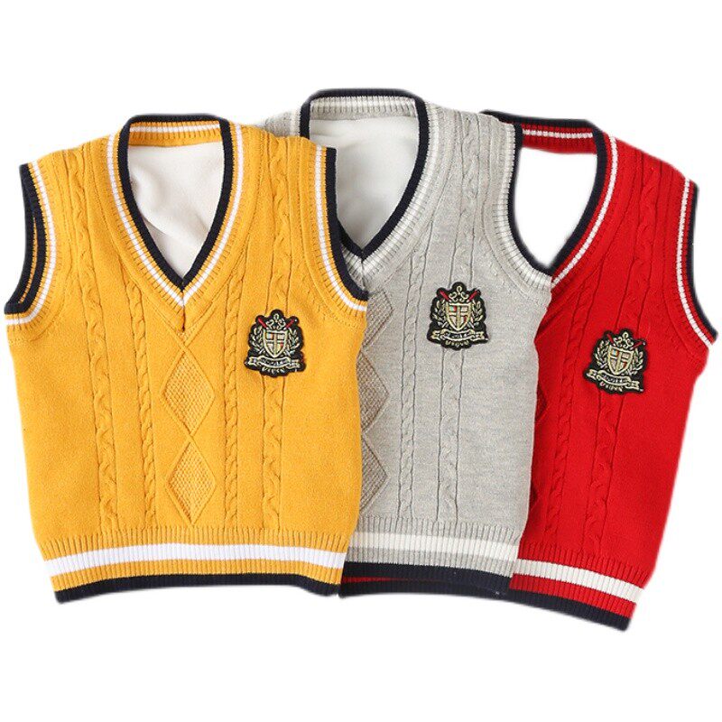 儿童毛线马甲加绒加厚男女童背心幼儿园班服小学生纯棉毛衣针织衫