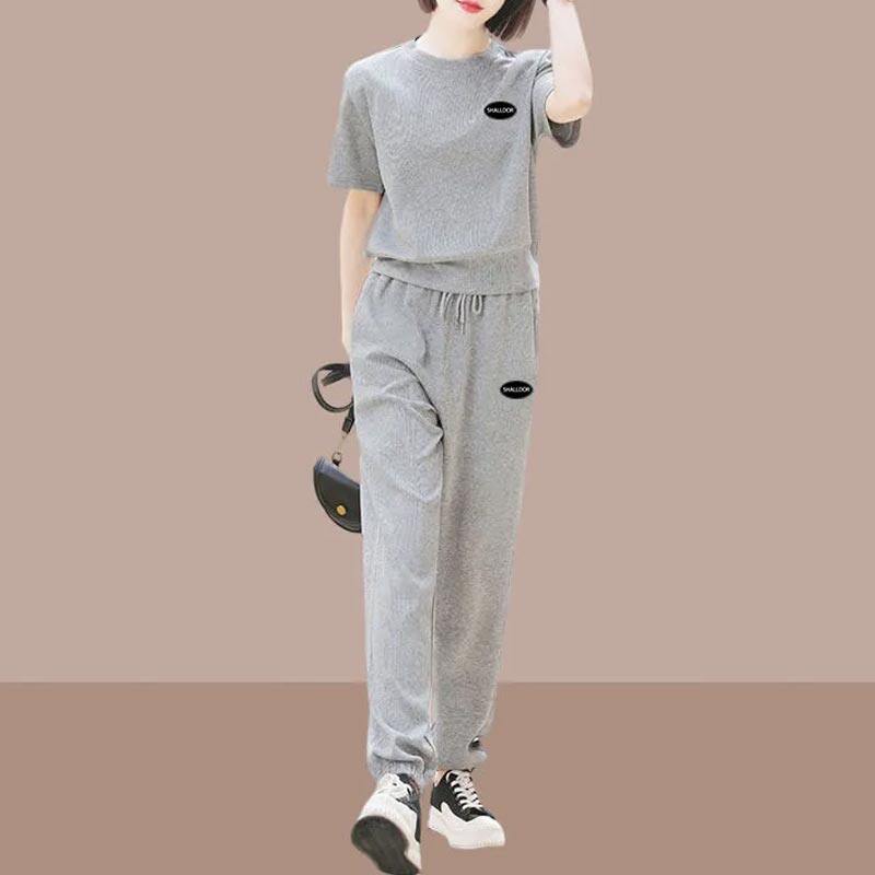纯棉运动服套装女士2026夏季新款休闲时尚两件套洋气减龄时髦大码