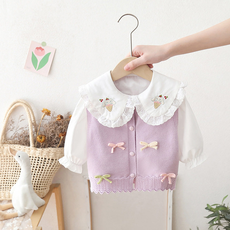 女宝宝秋装衬衫毛衣套装1234岁女童衬衣针织马甲两件套中小童上衣