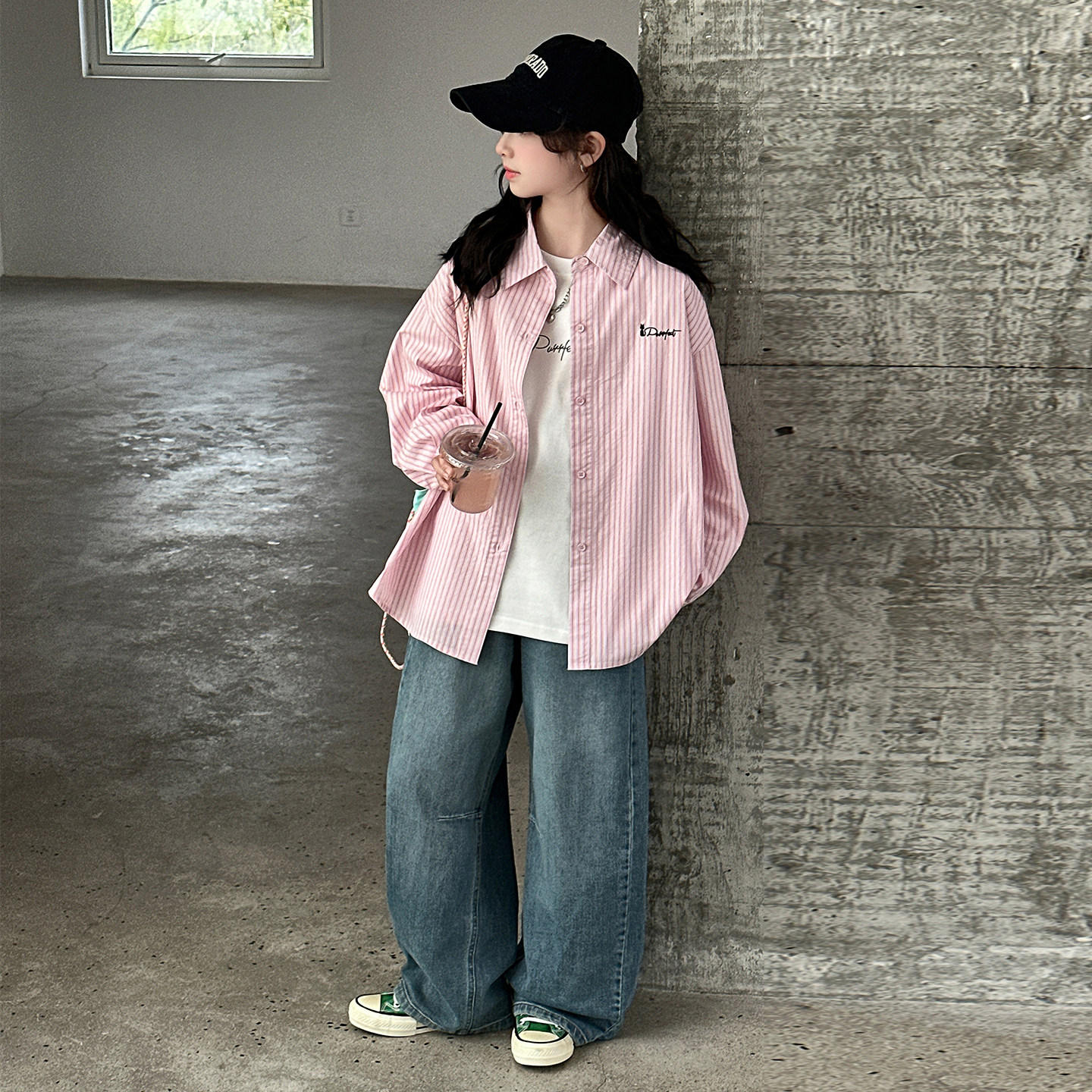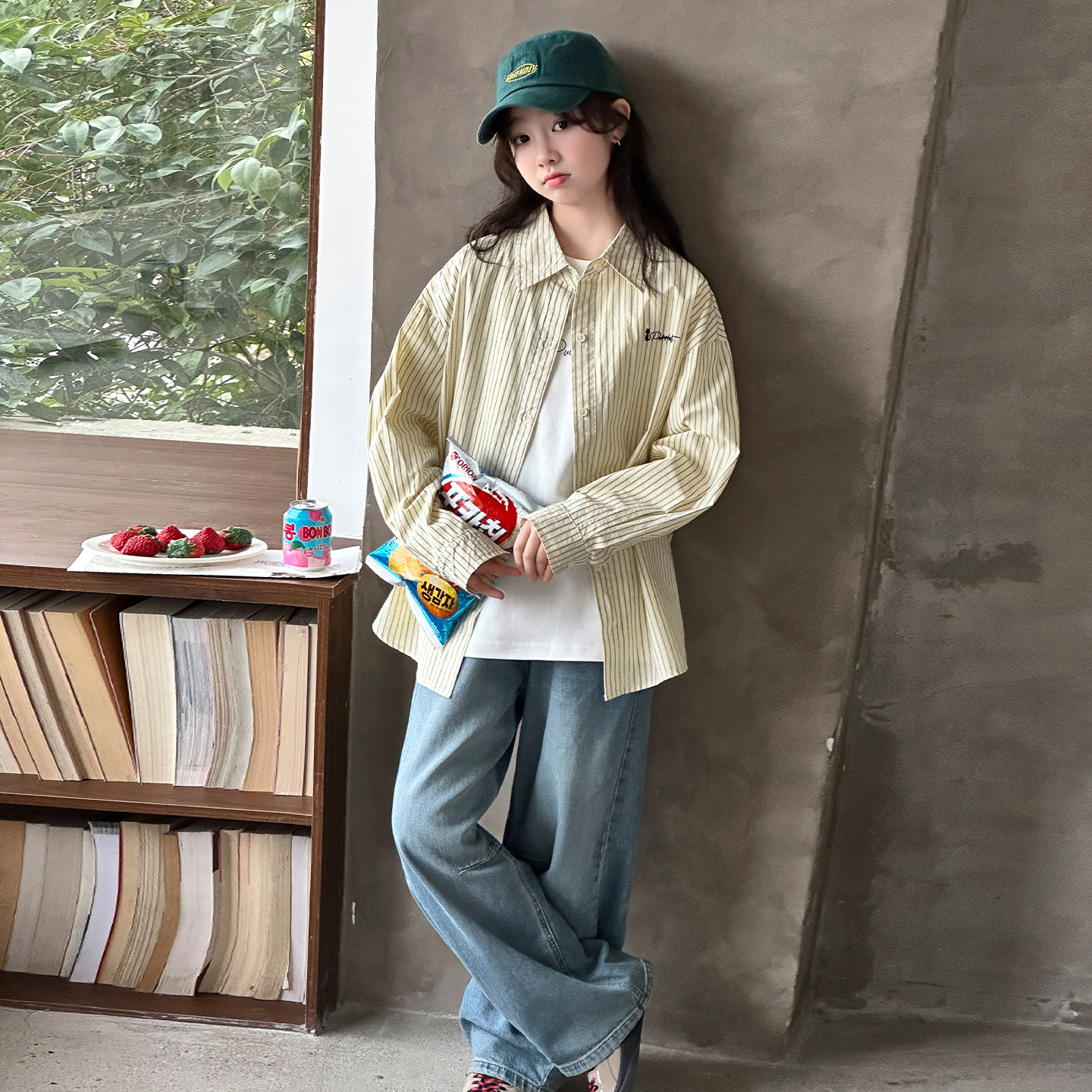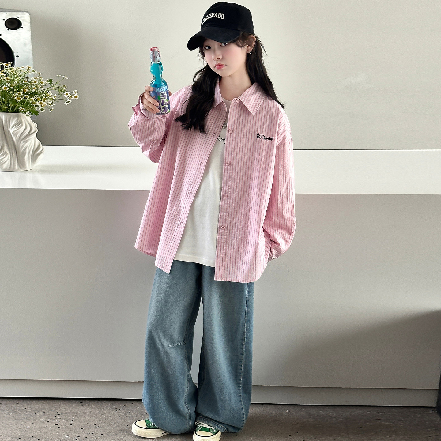 女童衬衫外套春秋2026新款初中生韩版衬衣儿童春装牛仔裤三件套潮
