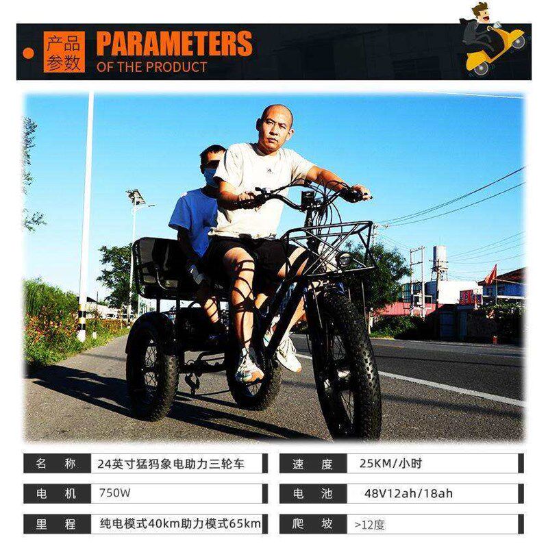750W24英寸胖胎雪地电动助力三轮M车成人脚踏三轮自行车